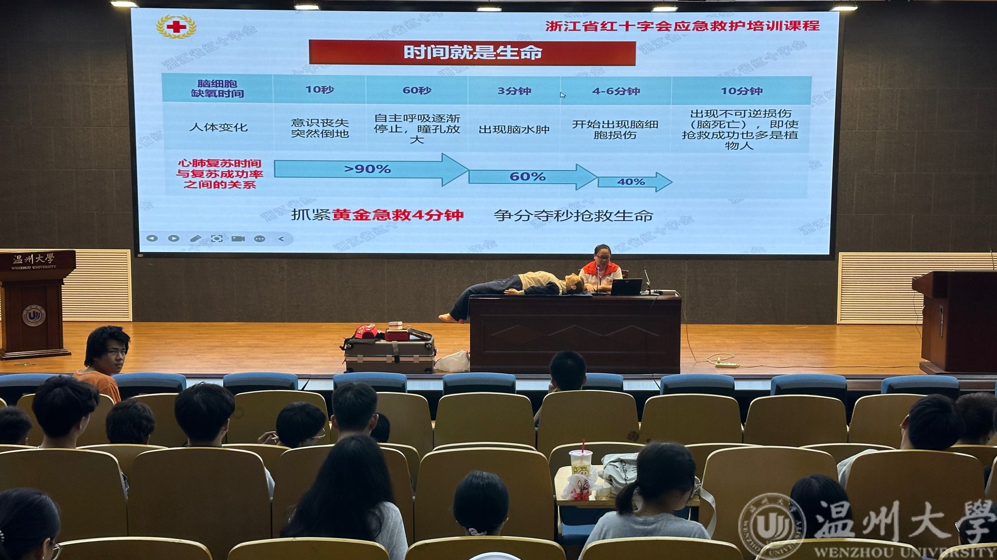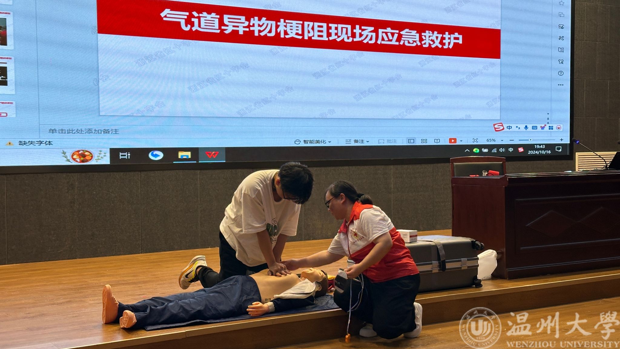 10月16日晚上,区块链游戏 在岩松堂步青厅成功举办了一场以“大学生安全自救知识”为主题的讲座,本次讲座由区块链游戏 医务室吴洁医生主讲,吸引了众多大学生前来聆听学习。讲座的内容贴合大学生实际,主要由两部分构成,一是现场CPR操作和AED的使用,二是气道异物梗阻的现场应急救援。