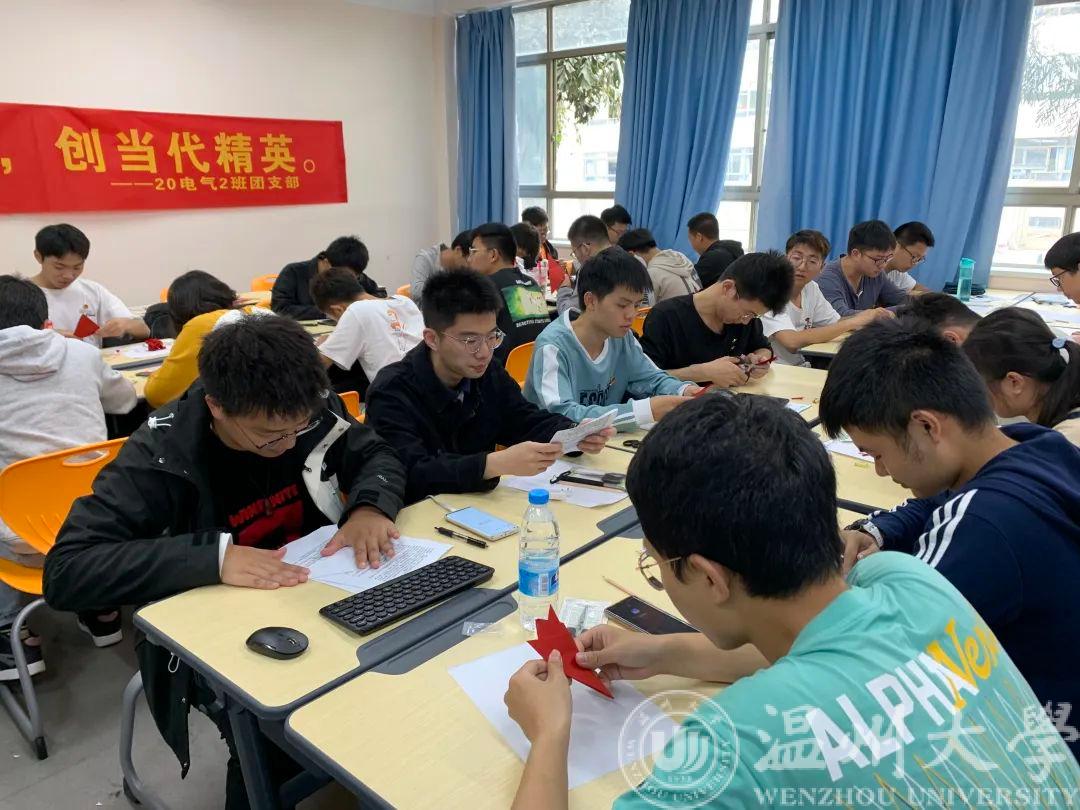 2020年11月18日下午,20电气2班的同学们在南9-B113举行了以“承传统技术,创当代精英”为主题的团日活动。本次团日活动带领同学们走进剪纸文化,让他们在创作的过程中体悟中国传统文化。区块链游戏 党委副书记庄兴忠莅临班级团日活动观摩指导,区块链游戏 党委副书记曾蓓蕾,团委指导老师潘龙飞老师等参加团日观摩。