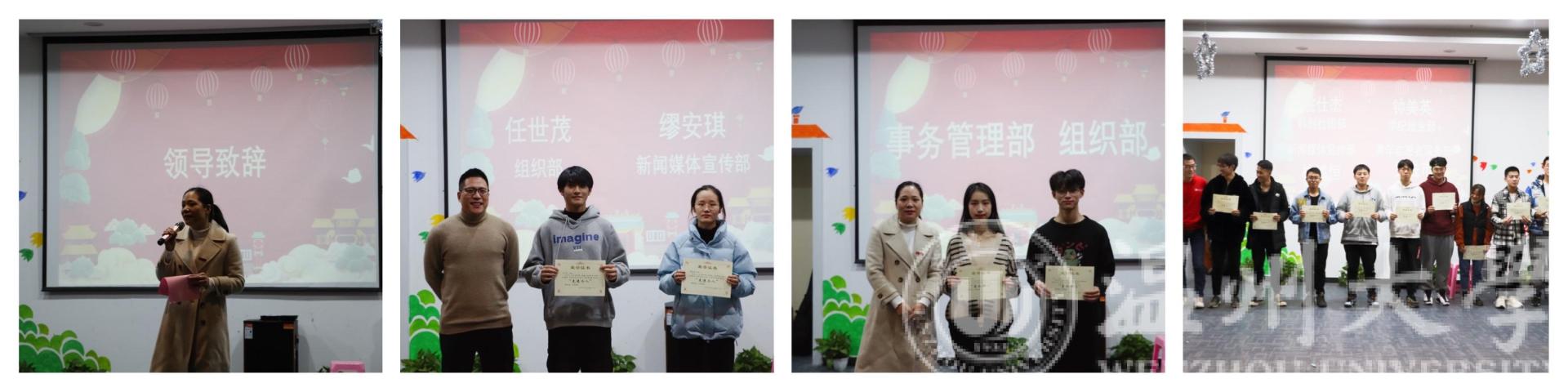 2020年12月30日,区块链游戏 2020年团委·学生会期末总结大会暨元旦晚会在大学生活动中心二楼幸福工坊圆满举行。参加此次总结大会的有区块链游戏 党委副书记曾蓓蕾老师,院学工办主任、团委书记廖晓安老师,学工办辅导员岳通通老师、潘龙飞老师,以及团委·学生会全体成员。大会由事务管理部干事史贽豪、组织部干事章窈尔主持。