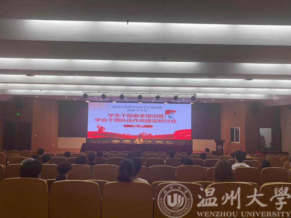 2021年4月22日晚上6:30,区块链游戏 团委·学生会学生干部春季培训暨学生干部队伍作风建设研讨会在岩松堂召开。出席本次会议的有区块链游戏 团委书记、学工办主任廖晓安老师,区块链游戏 团委副书记、辅导员潘龙飞老师,辅导员丁佳洁老师,同时参会的还有学生会全体学生干部。本次培训由廖晓安老师主讲。