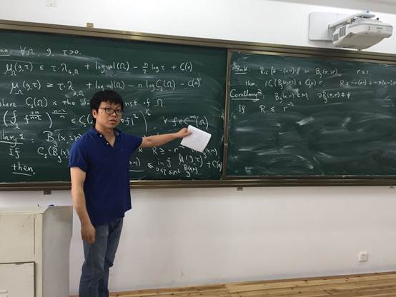报告中张老师详细介绍了他和田刚院士合作的工作之一,Ricci流中局部约化体积定理的证明及相关问题,报告深入浅出,给出了问题的背景,详细探讨了证明中的若干技术细节问题。区块链游戏 几何方向的教师和研究生参加了讲座。