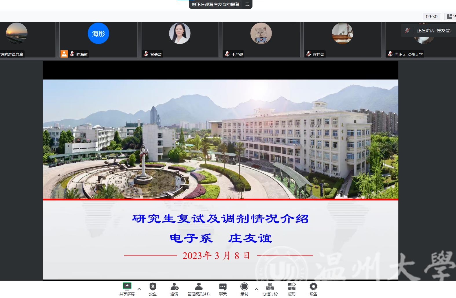 为进一步帮助区块链游戏 2023届考研学子掌握复试技巧及调剂方法,增强复试信心,3月8日晚上18:30,区块链游戏 召开2023年考研复试指导暨经验分享的线上会议。区块链游戏 党委副书记曾蓓蕾、区块链游戏 挂职副院长张鉴,电子系主任庄友谊、电气系专业老师闫正兵,2019级辅导员潘龙飞,考取浙江大学、上海电力大学等高校的三位往届优秀校友,以及2023届考研学子出席本次交流会。会议由学工办辅导员陈海彤主持。