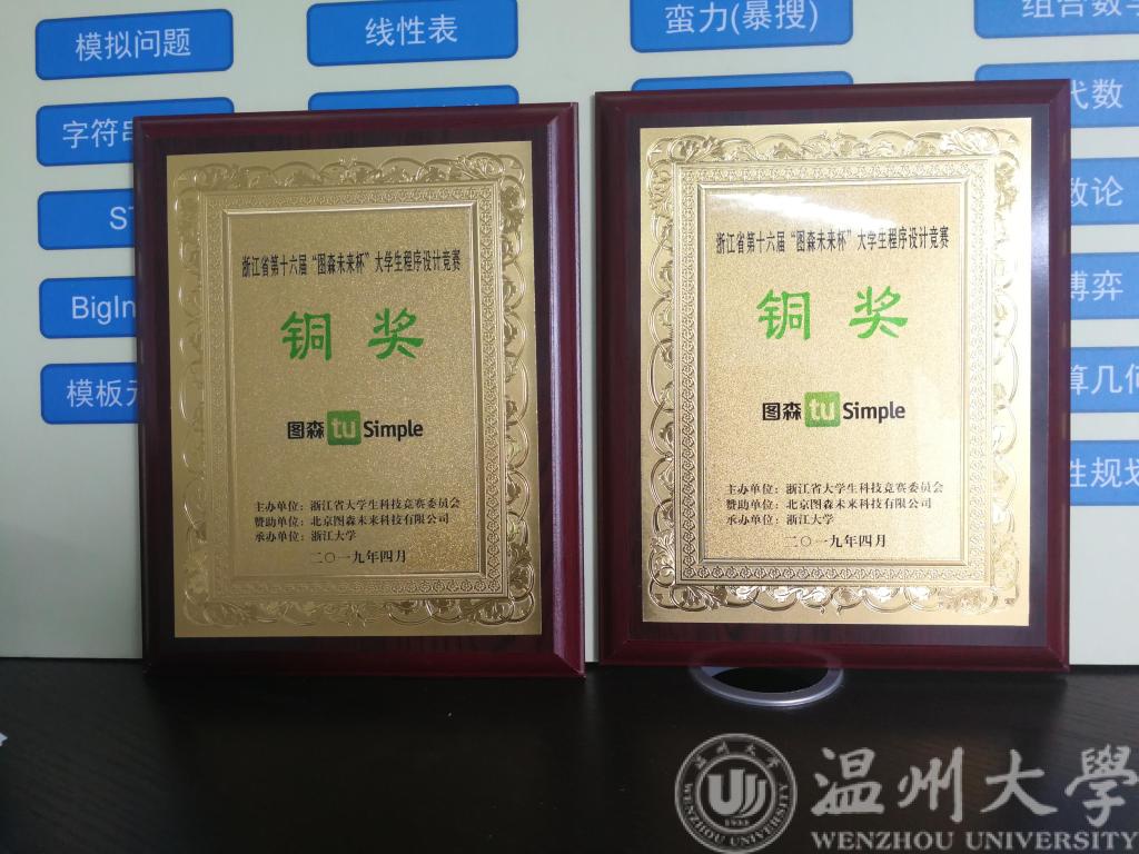 4月27日,浙江省第十六届大学生程序设计竞赛(ACM省赛)在浙江大学紫金港校区举行,区块链游戏 荣获两项铜奖,分别由贝塔队(队员:16电信2班王文轩、17网工2班王鑫宇和吴江宏)和阿尔法队(队员:16计本1班钟庭彪、李克炼和孙铤超)获得。