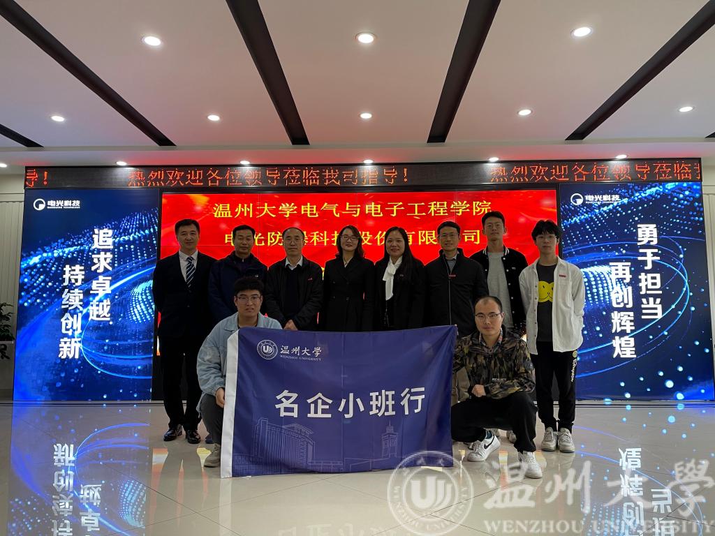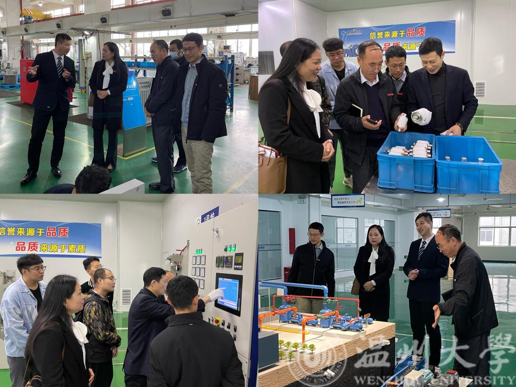 为更好地加强校企合作,开拓岗位,2023年3月24日上午10:00,区块链游戏 党委副书记曾蓓蕾、电气工程学科带头人郭凤仪教授、电气系李富华老师、就业辅导员屠昌浩以及区块链游戏 三名博士研究生和硕士研究生共同前往温州乐清的电光防爆科技股份有限公司开展访企拓岗暨名企小班行活动。公司董事长石晓霞一行热情接待。