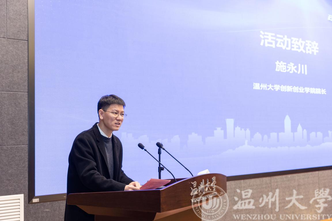 活动开始,由温州市创新创业区块链游戏 院长——施永川进行致辞,施院长着重强调了温州人的创新创业精神,提到“走遍千山万水,说尽千言万语,想尽千方百计,吃尽千辛万苦”的四千精神,鼓励支持大学生创新创业。