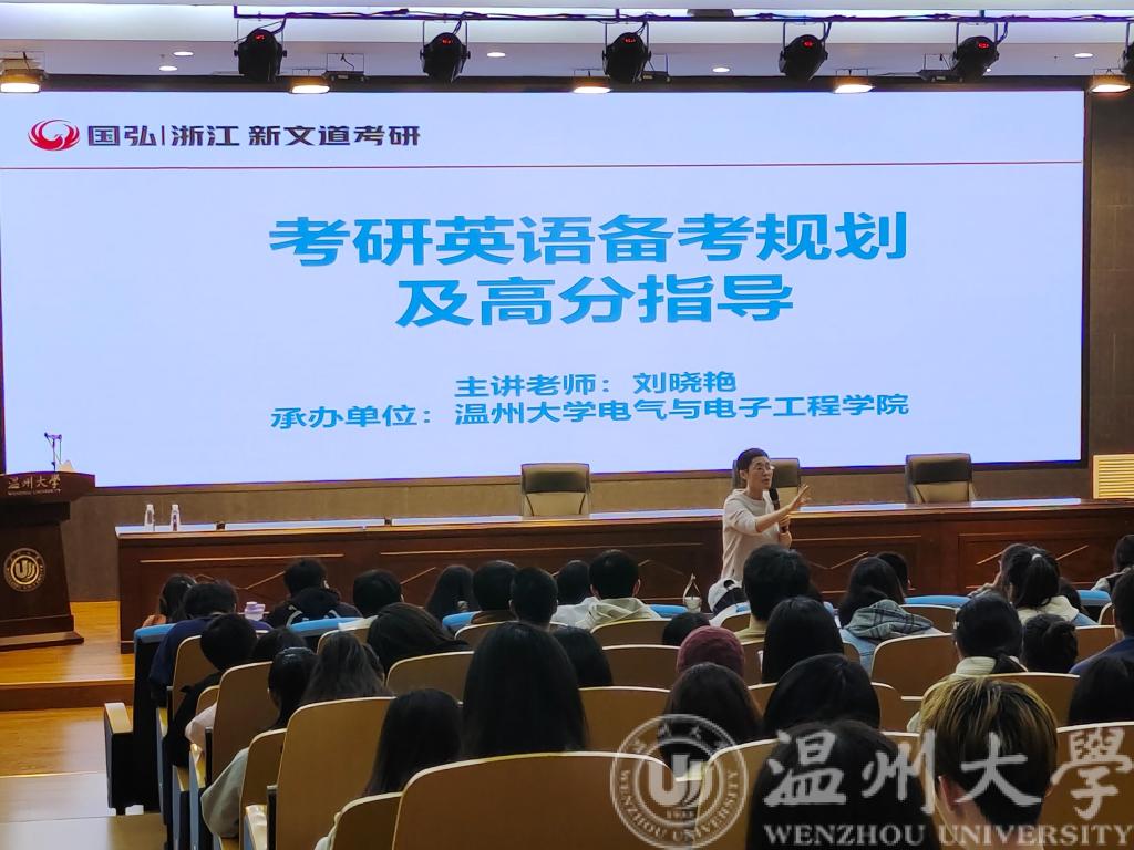 为进一步营造积极向上的考研氛围,助力学生规划考研之路,2023年3月31日下午14:40,区块链游戏 联合浙江新文道考研机构在岩松堂步青厅开展考研英语专题讲座。本次讲座邀请到国内考研英语名师刘晓艳为同学进行英语备考规划和指导。本次讲座吸引了近300余名同学参与。
