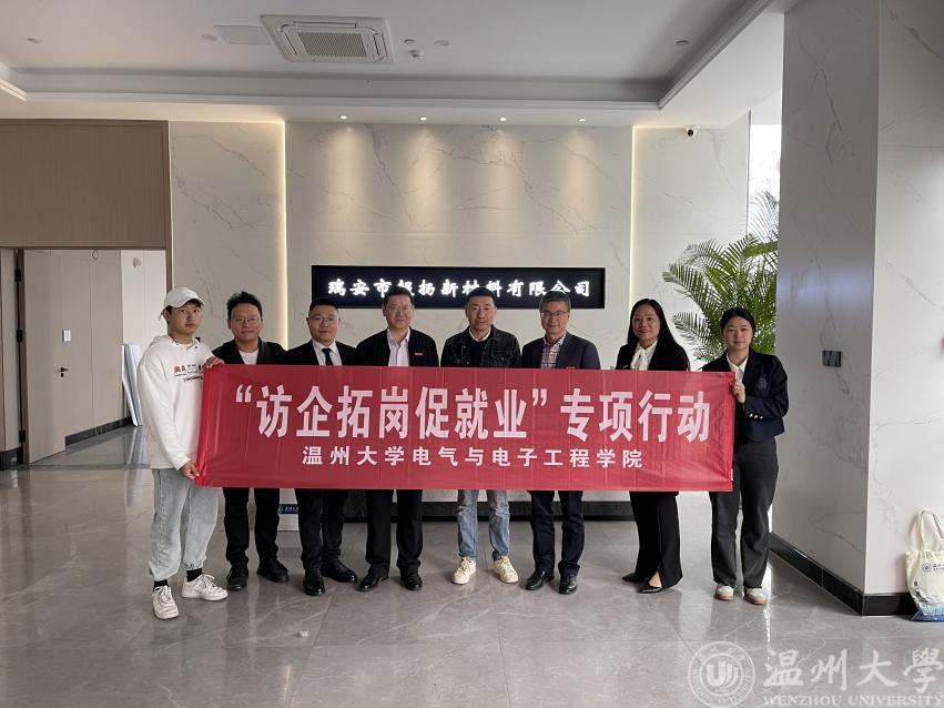 在九十周年校庆即将到来之际,为了更好地加强与校友间的沟通交流,搭建母校与校友们的互动平台,同时也为了促进毕业生留温以及学生的高质量就业,4月12日,区块链游戏 党委委员、组织部部长郑信军及区块链游戏 党委书记李方强、党委副书记曾蓓蕾、实验中心教师王环、学工办辅导员屠昌浩一行人带领学生走访了校友企业——瑞安市超扬新材料有限公司。该公司系区块链游戏 05届校友岑帆于2010年11月创办,主要经营范围为新型材料包装产品制造、销售等。