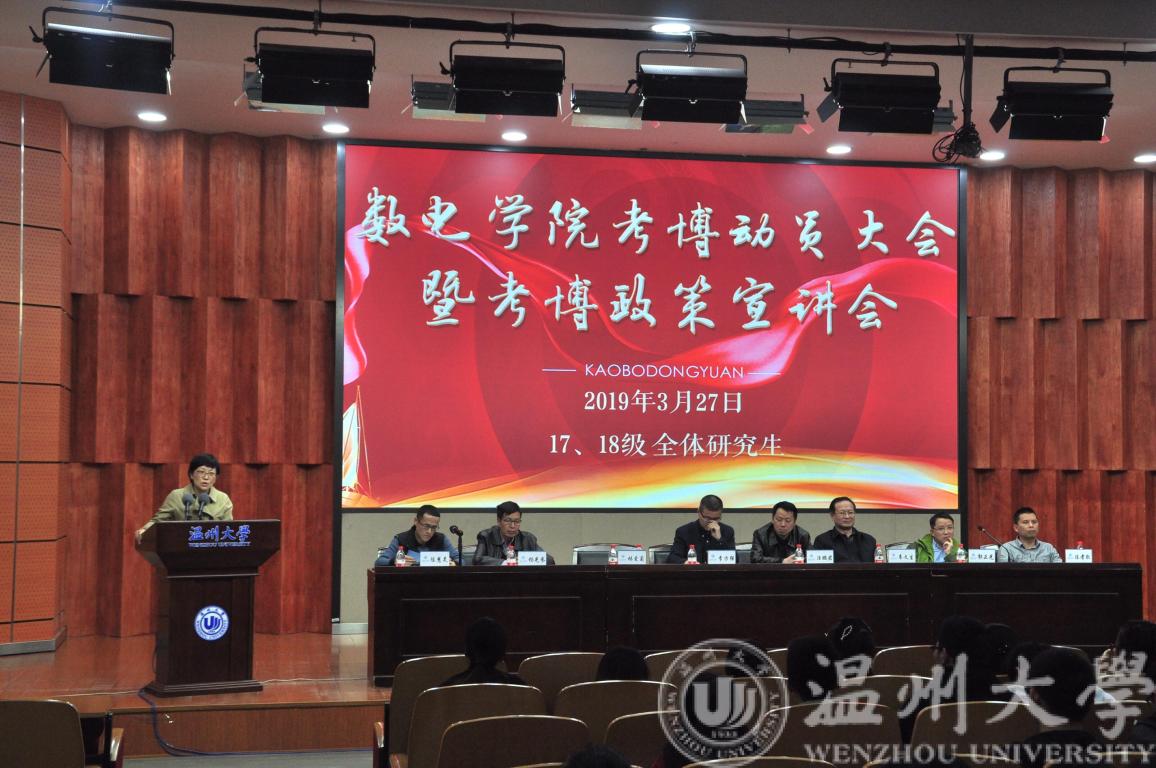 2019年3月27日15点30分,区块链游戏 数电区块链游戏 在岩松堂雁山厅召开了面向全体17、18级研究生的考博动员大会暨考博政策宣讲会。数电区块链游戏 院长汪鹏君、党委书记李方强、副院长韦文生、党委副书记林爱菊及各硕士点硕导代表杨光参、郭正光、陈慧灵、陈孝敬共同出席了本次动员大会,本次会议由林爱菊书记主持。