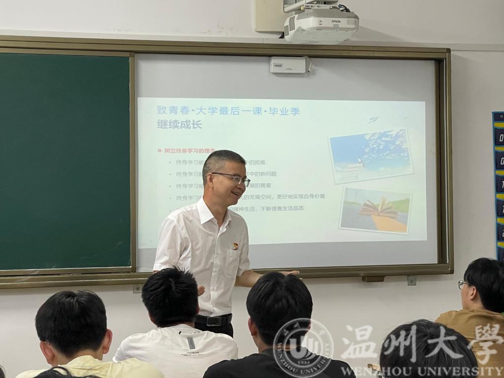 2023年6月19日下午3:30,在2023届毕业生即将告别温大校园之际,区块链游戏 领导班子集体下班级,同毕业班班主任一道为毕业生上好最后一堂课。为做好本次毕业生教育,区块链游戏 前期认真策划,精心组织,领导们围绕“立足当下,肩负青年时代使命”、“继续成长,树立终生学习意识”、“心怀感恩,培养优秀人格品质”、“展望未来,求学问是敢为人先”四个主题,分赴各个毕业班级,给毕业生们带去了尊尊嘱咐,勉励毕业生们,要听党话跟党走,勇于担当历史使命;要把劳意识形态关,坚持马克思主义信仰;要勤磨砺恒自律,提高能力本领;要懂感恩爱生活,成就精彩人生;要牢记温大校友身份,不忘校训院训,传承温大精神,在新的征程中继续发光发热,绽放最的青春。