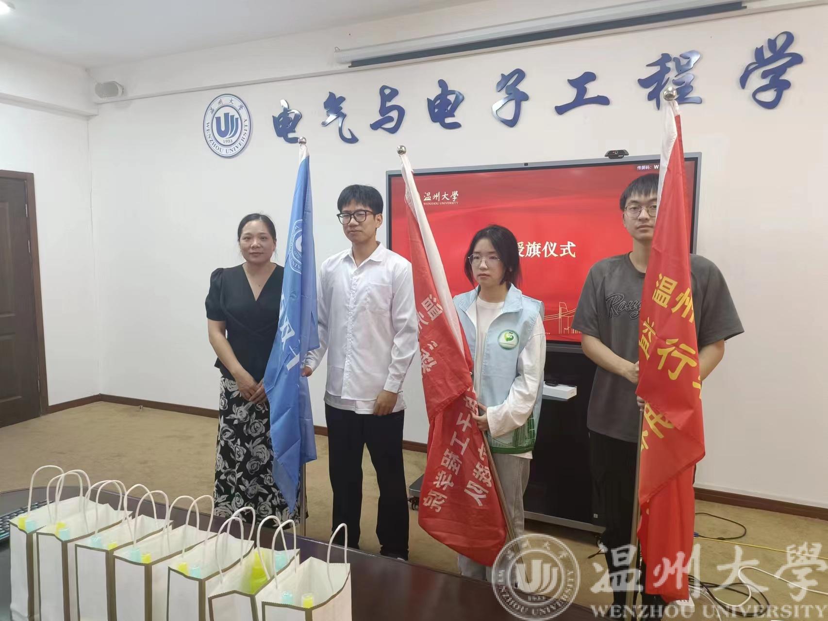 紧接着是授旗仪式,由曾蓓蕾书记给全体实践队代表颁发旗帜,暑期社会实践活动的号角正式吹响。