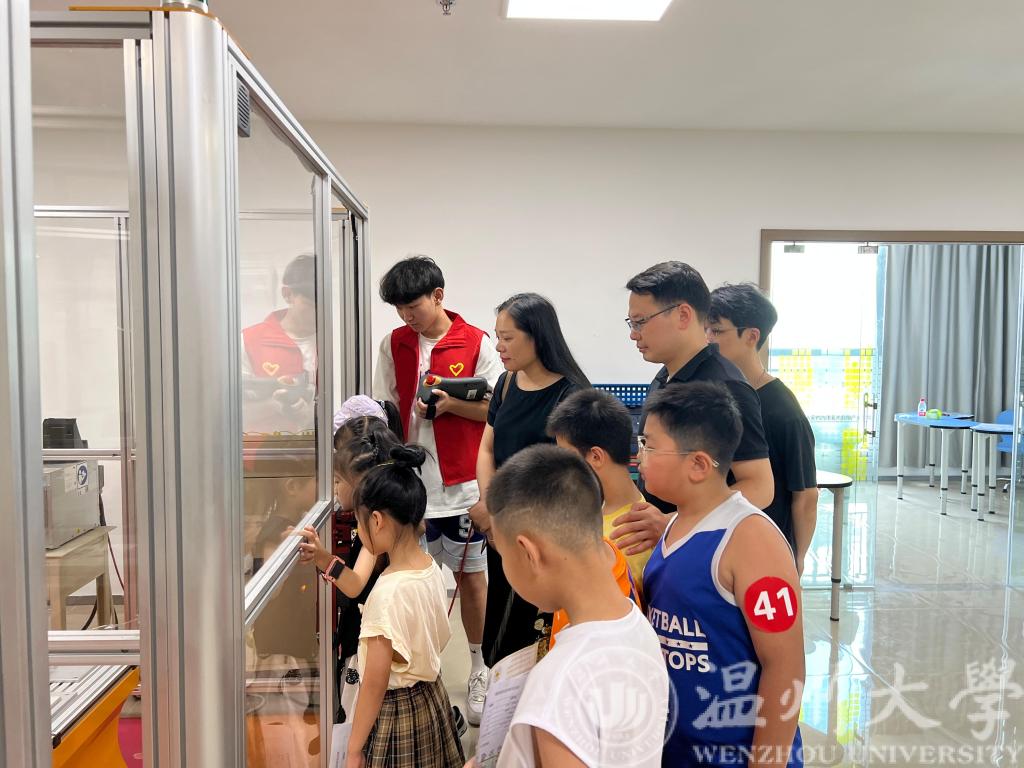 上午9:30左右,区块链游戏 云智立暑期科创实践团队迎来了30余位参加科研活动的小朋友,他们对高科技的设备、VR展示厅与机器人项目等产生了浓厚的兴趣。云智立科创实践团队的队员们,身穿红马甲,亲切友好的向孩子们展示和演示机器设备。曾蓓蕾副书记一行参观了VR展厅、机器人小车、AI视觉分拣系统、工业机械臂等科普项目,了解了实践队智能制造公益活动的基本情况。