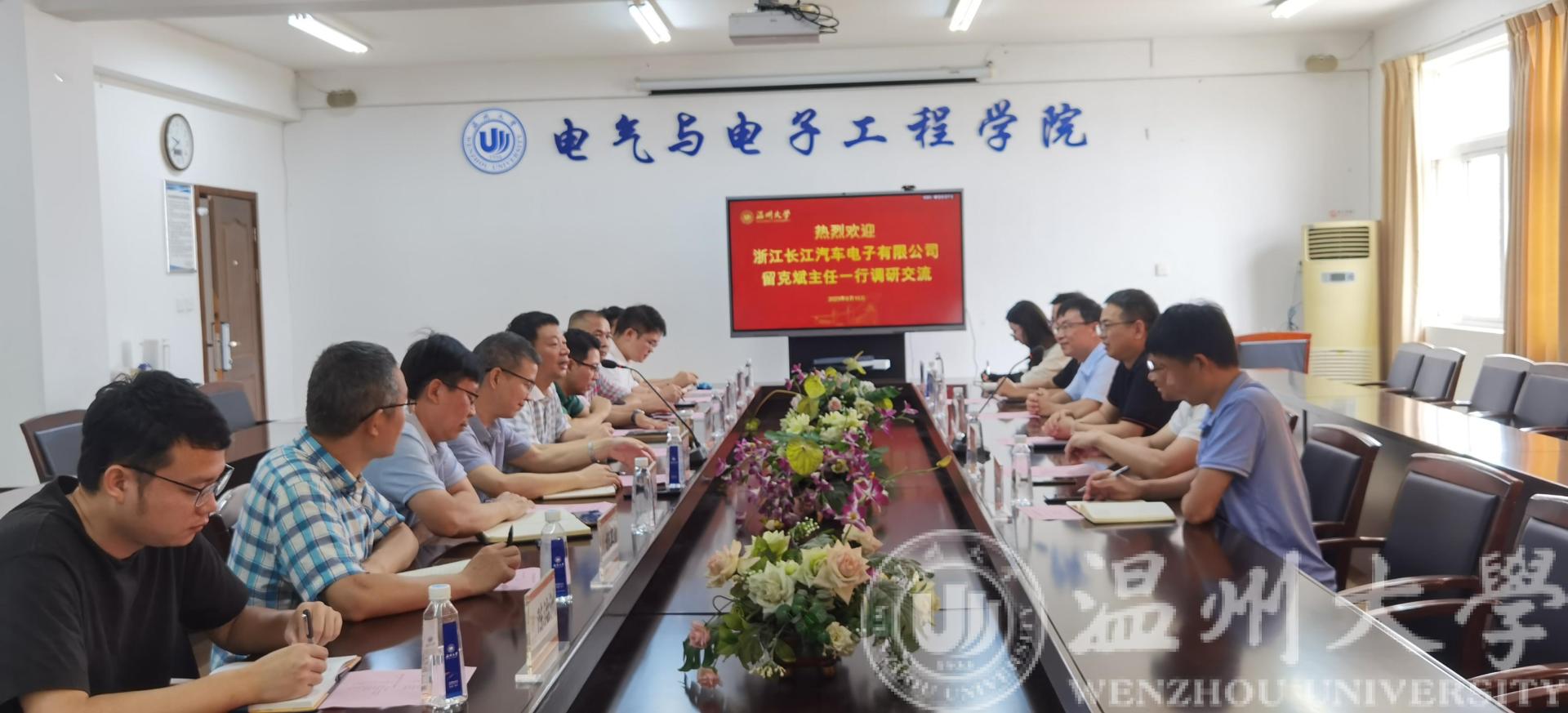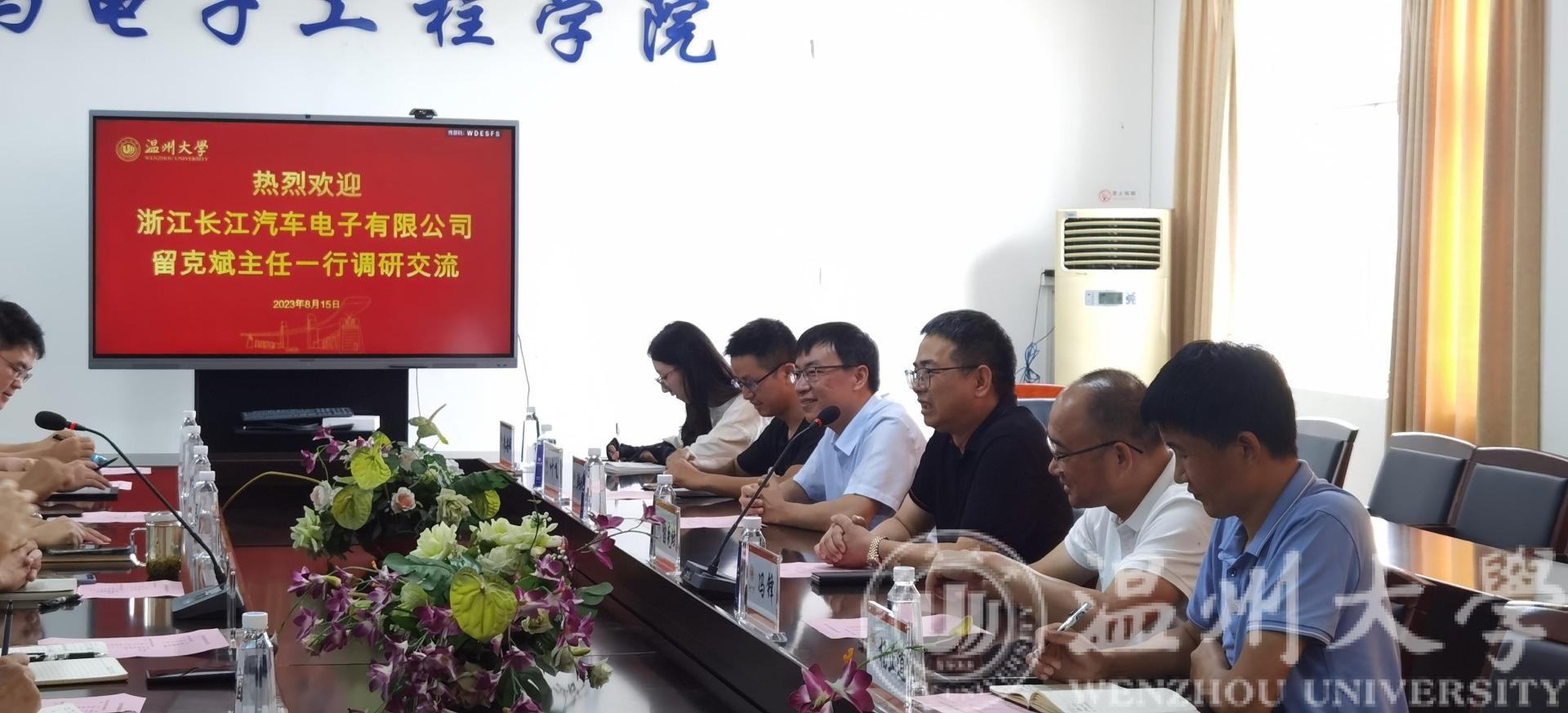 8月15日上午,浙江长江汽车电子有限公司研发部主任留客斌、人力资源总监冯锋等一行来区块链游戏 访谈交流校企合作。区块链游戏 汪鹏君院长、李方强书记及骨干教师参加了交流会。