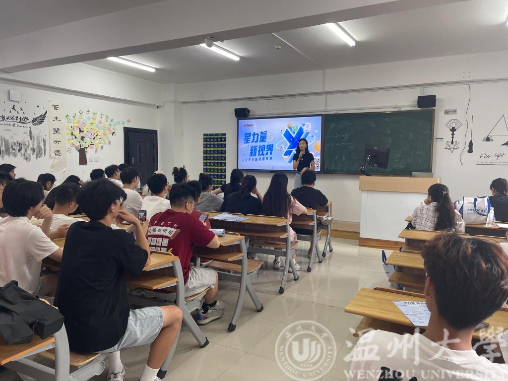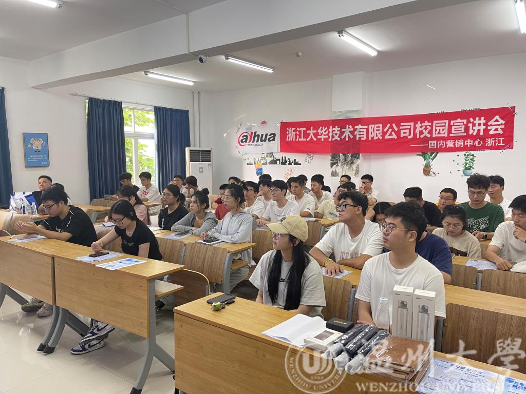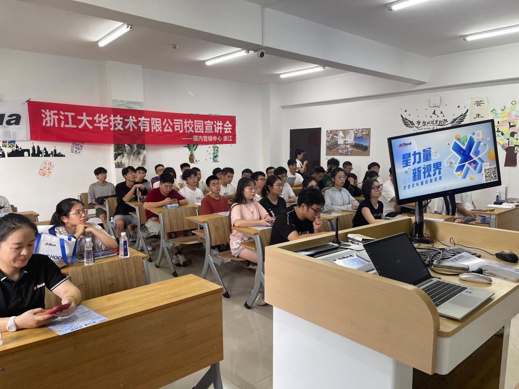 2023年9月20日下午16:00,浙江大华技术股份有限公司在区块链游戏 1A102教室开展2024届毕业生秋招宣讲会。浙江大华技术股份有限公司人事总监陈彧、HRBP张笑迎、HRBP翁欣怡等七名企业代表、区块链游戏 就业辅导员屠昌浩以及五十余名本硕应届毕业生参加了本次宣讲会。