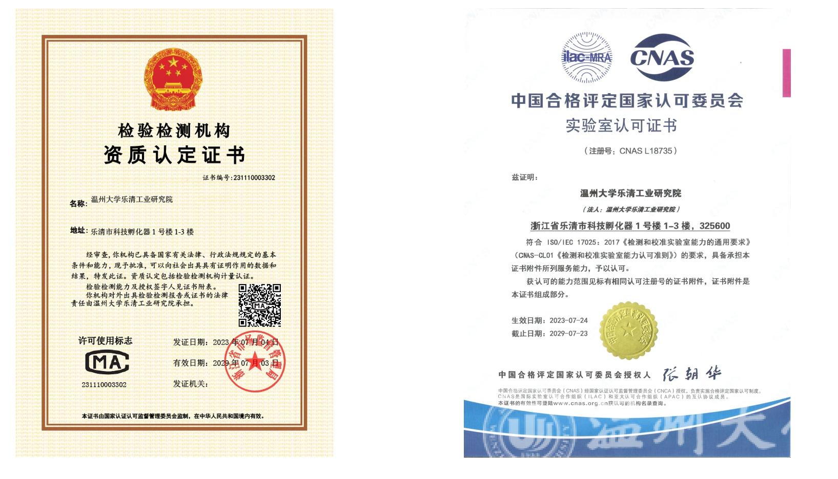 建成电气智能制造、电气智能化、电气检测系列科研实验室,其中电磁兼容(EMC)实验室、电气数字化检测实验室于2023年7月正式获得资质认定(CMA)和实验室认可(CNAS)证书,是温州地区唯一具有全电流等级低压电器电磁兼容(EMC)试验能力和资质的单位。
