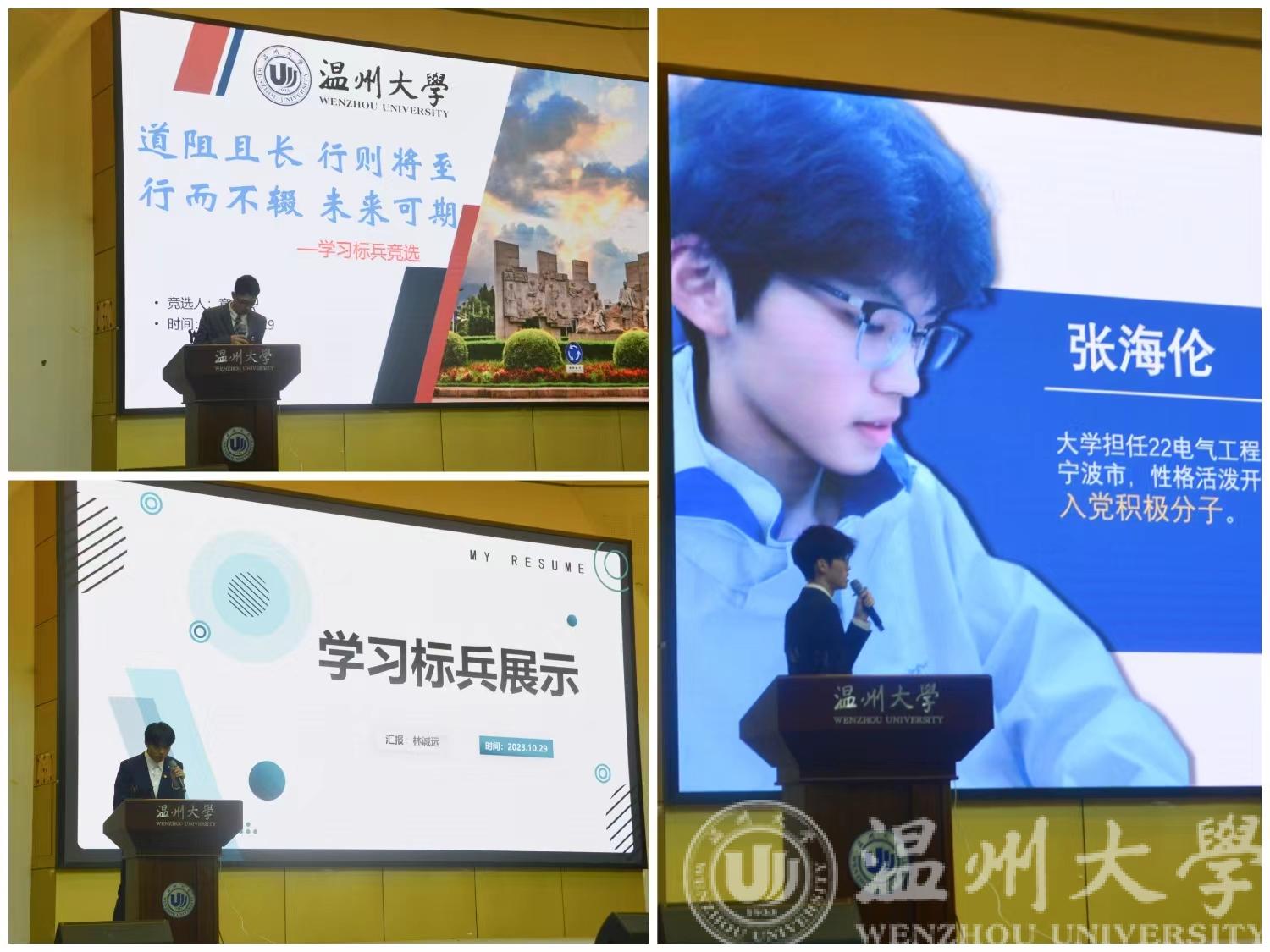 随后进行的是学习标兵的评选,各位参评选手用PPT、照片、视频等方式充分展现了自己在学习、社会实践、志愿活动等方面的卓越成就,也将自己学习的技巧介绍和好习惯分享给在场的同学们。这不仅向大家展示了自己光荣的成就,同时还展示了温大学子的风范。