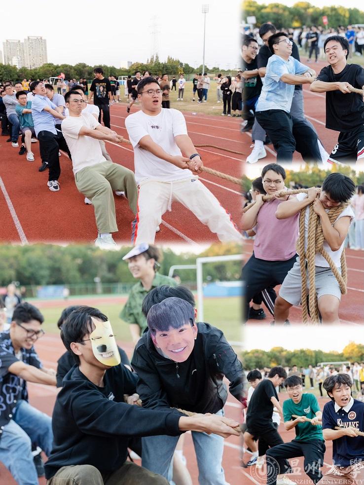 一场师生趣味运动会,当然少不了拔河环节。裁判鸣笛,大比亟发。双方瞬间陷入僵持,等待一个破局的关键。排尾同学稳住重心,排头同学震慑对手,中间同学团结一心。每一个人都咬紧牙关不言弃,攥紧麻绳不放手。加油声、呐喊声,此起彼伏,将本届师生趣味运动会推向高潮。