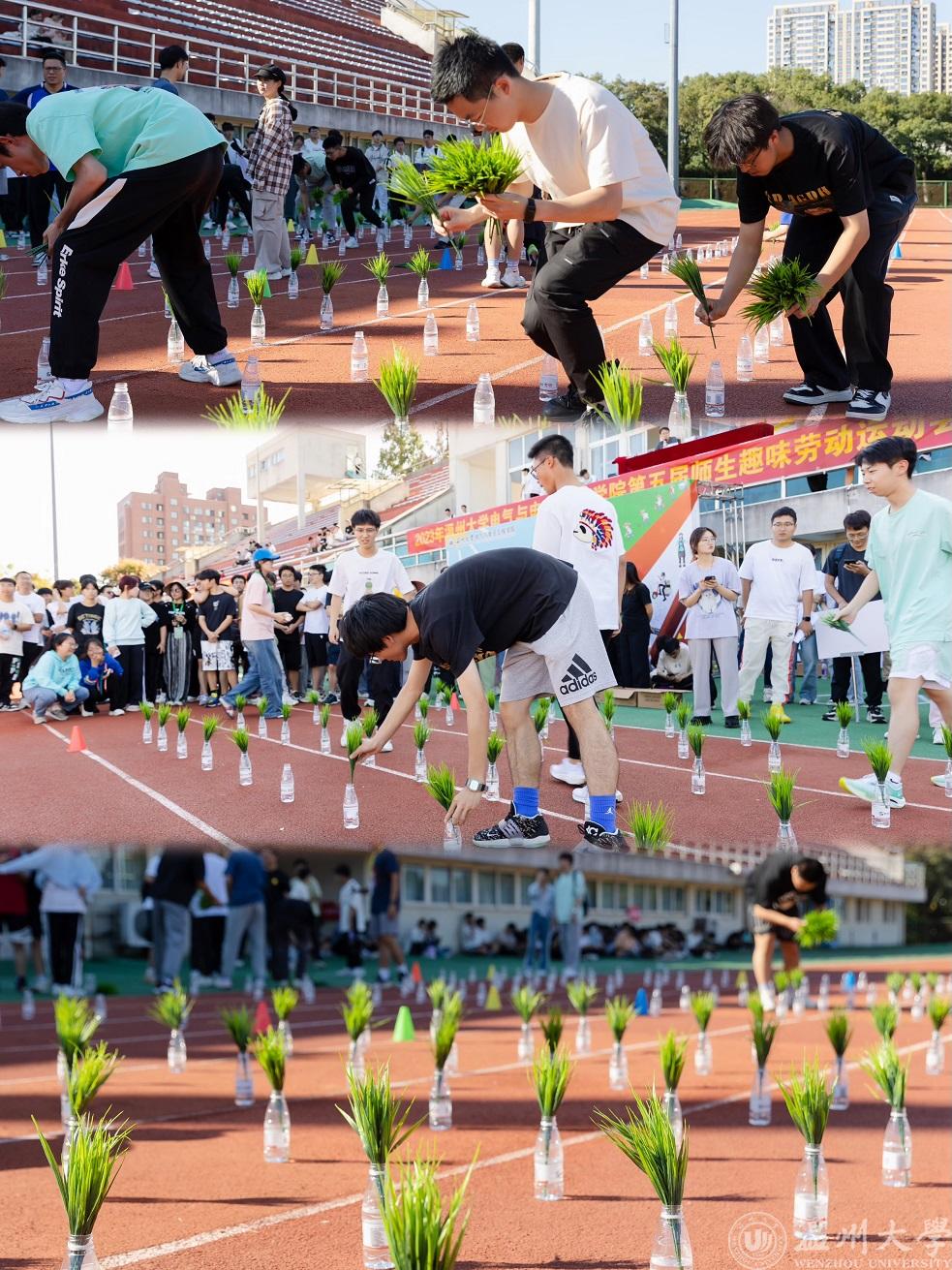 整地完毕,就要开始播种了。“插秧小能手”模拟了田园插秧的步骤,师生们在特别的“田地”上又快又准地将“秧苗”插入“田地”。全心全意地投入插秧,各个队伍齐心协力,毫不逊色。看这些整齐的“秧苗”,同学们真是干活的一把好手。