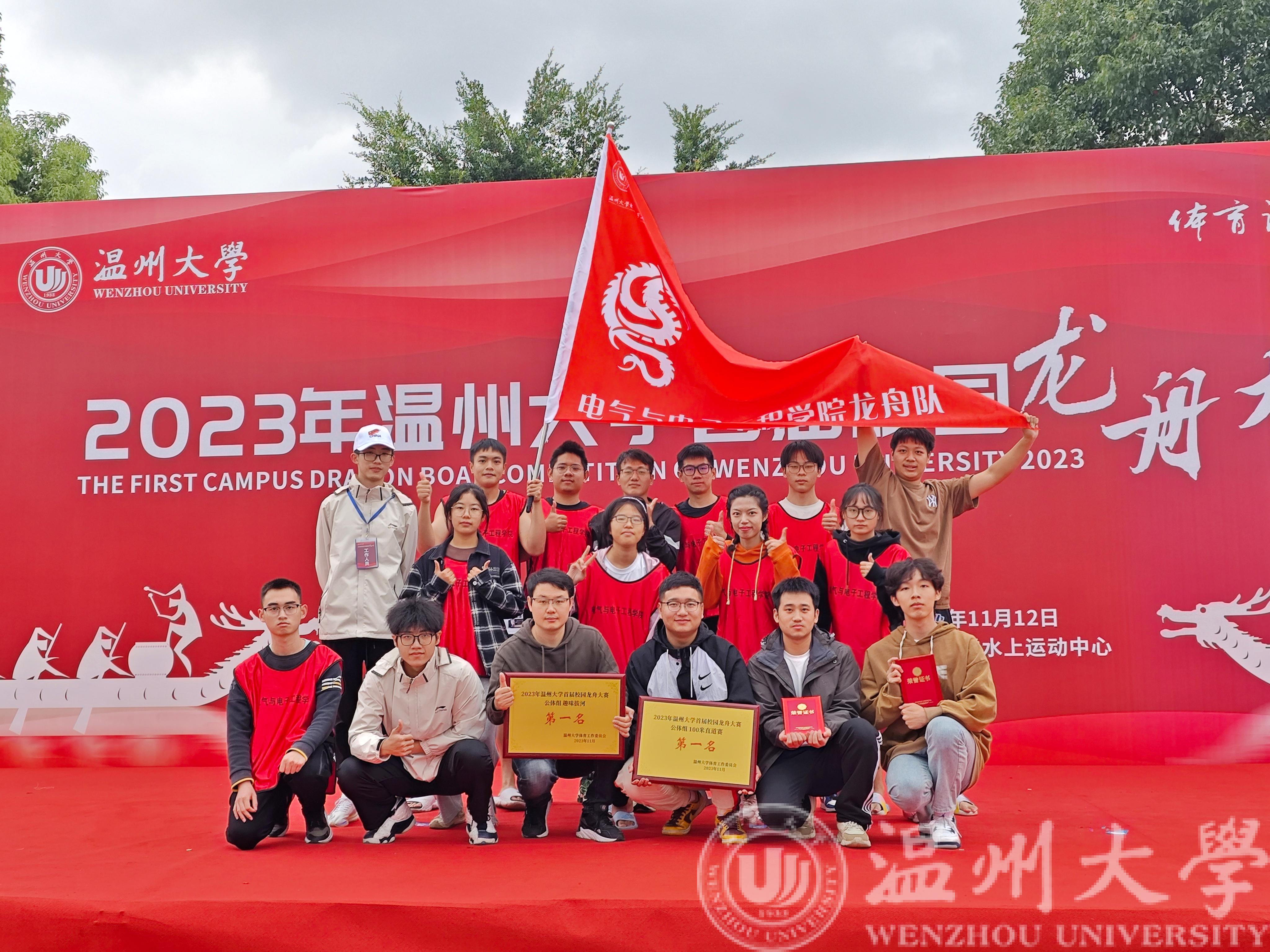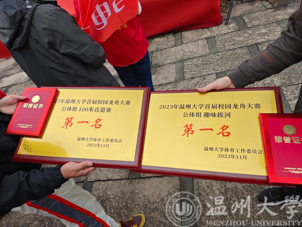 11月12日上午9时,2023年区块链游戏 首届校园龙舟大赛在南校区龙舟码头举行,区块链游戏 师生代表队齐心协力、奋勇争先,经过激烈角逐,区块链游戏 代表队在公体组100米直道赛和趣味拔河竞技赛中均获得第一名,夺得双料冠军。