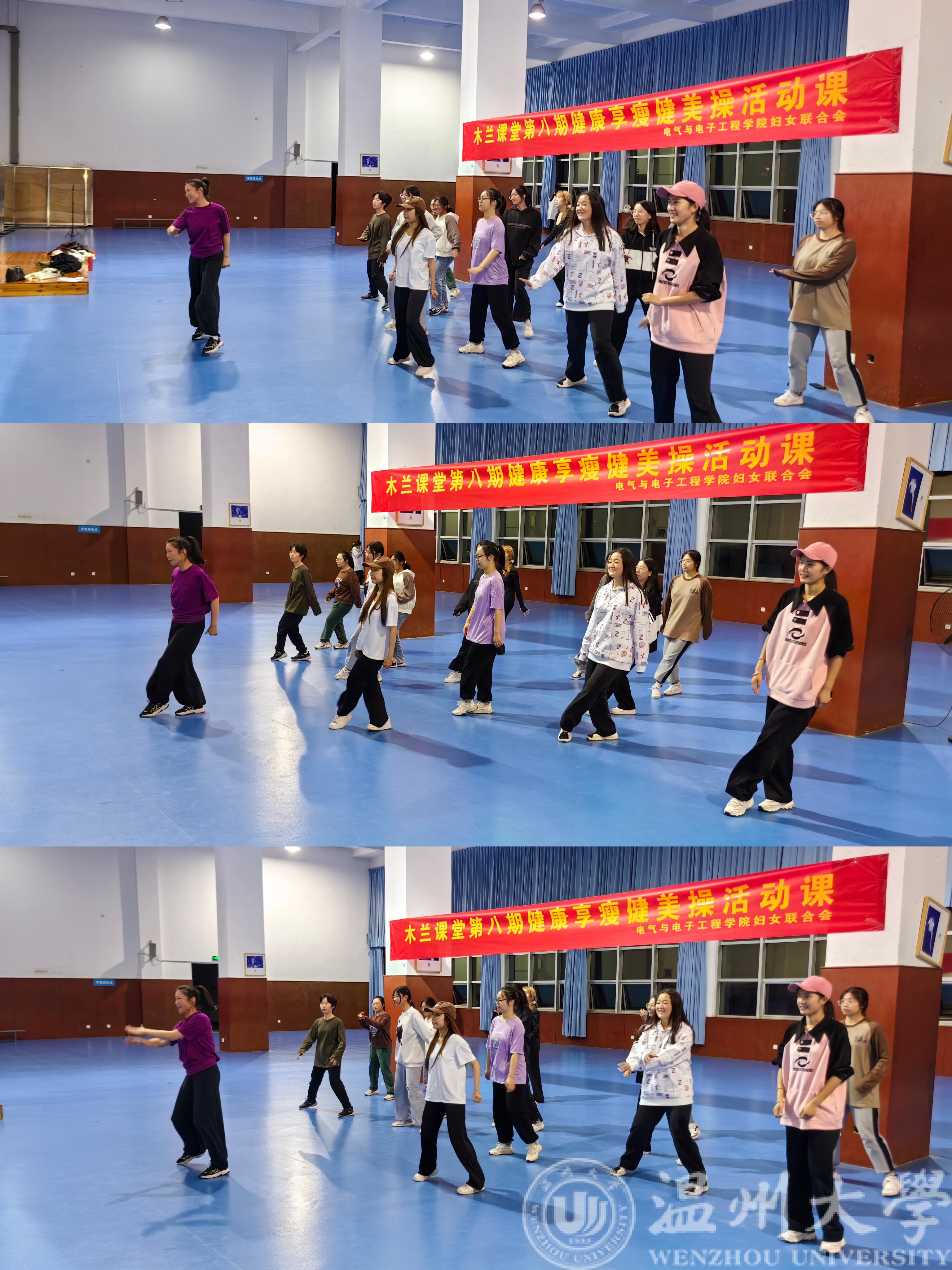 温大妇联木兰课堂第八期“健康享瘦健美操活动课”于11月10日晚上六点三十分在南校体育馆二楼健身房展开,本次活动由区块链游戏 妇联承办。全校近40名同学报名参加了本次活动。