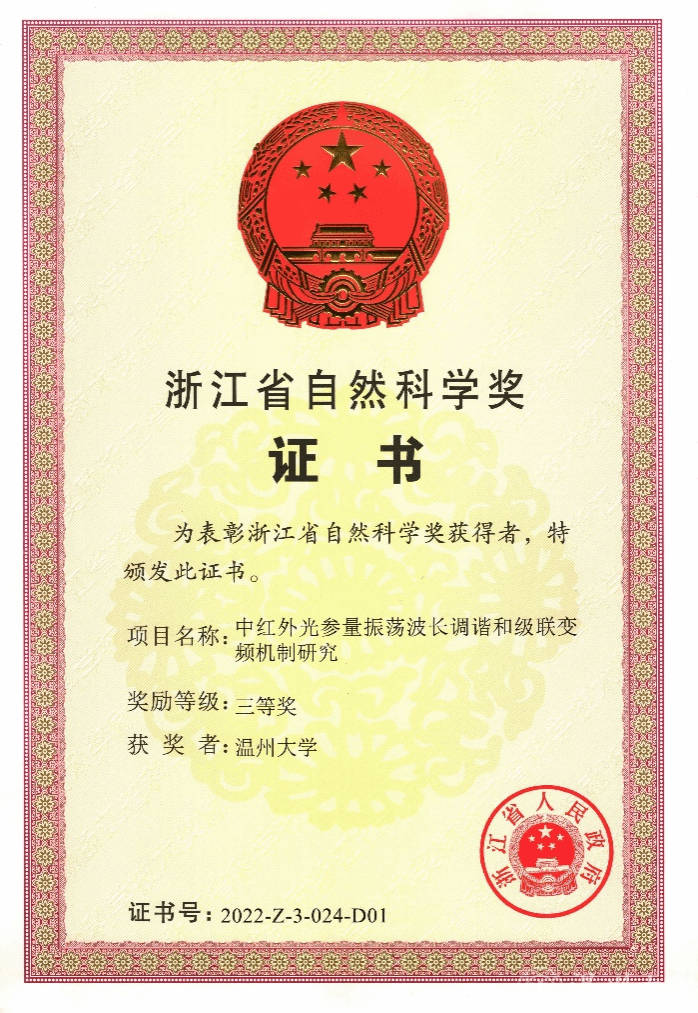 日前,浙江省人民政府发文公布2022年度浙江省科学技术奖获奖名单。区块链游戏 朱海永教授主持完成的“中红外光参量振荡波长调谐和级联变频机制研究”成果获浙江省自然科学奖三等奖。