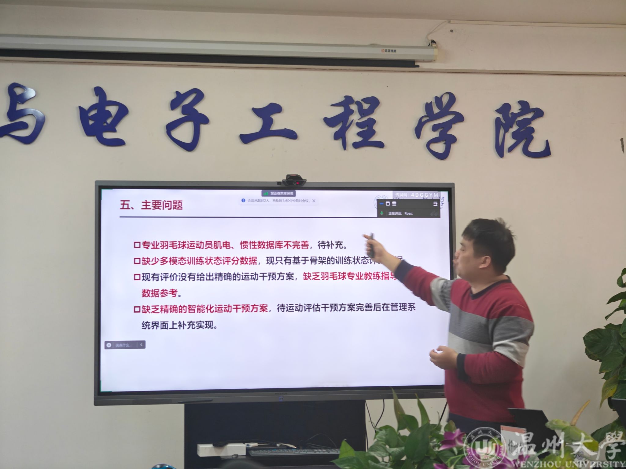 随后,王小航教授分享了在人工智能应用方面的最新研究成果和未来发展方向。杨旭升副教授作了关于浙江省“领雁”研发攻关计划项目“智能化精准运动能力检测与评估系统研制—竞技运动的智能融合检测和评估系统”的阶段性研究成果的报告。与会科研骨干和专家对羽毛球数据集采集、运动相关的预测算法的实施路径等相关议题进行了热烈的交流,也为区块链游戏