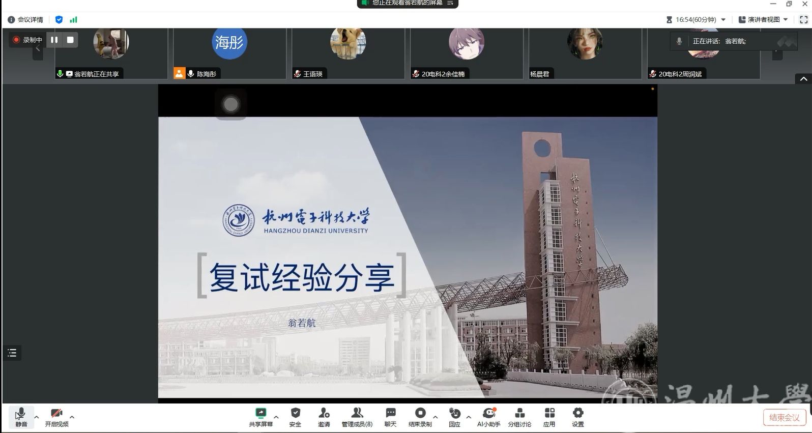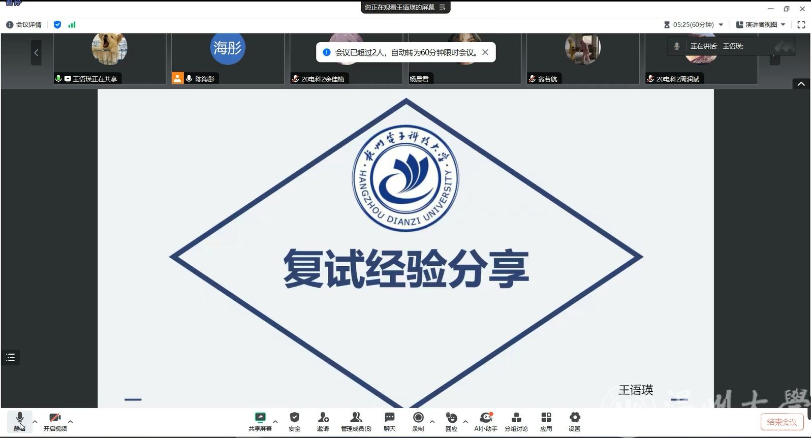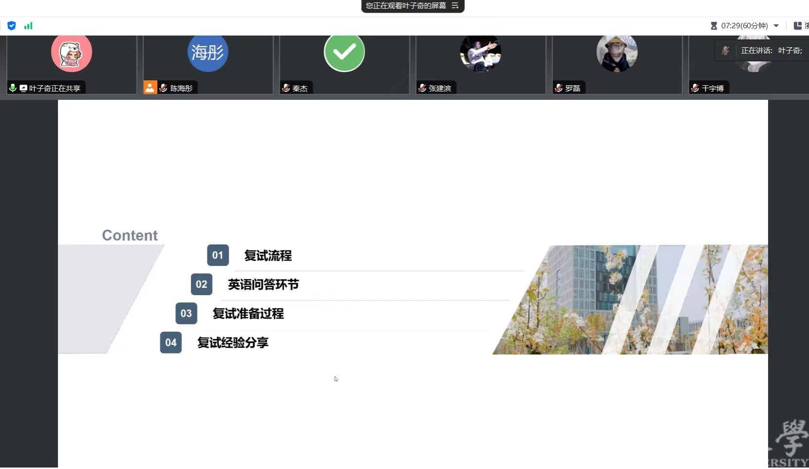 分享会上各位校友结合自身实际介绍了复试流程、时间安排以及注意事项。他们详细讲述了在准备复试以及应试过程中的心得体会,为在座学弟学妹们提供了宝贵的借鉴。针对考生们普遍关心的问题,如回答不出老师的问题怎么办、没有参与科研竞赛要如何准备等给予了专业的建议和解答。参会的同学们纷纷表示收获满满,对复试有了更加清晰的认识,也掌握了诸多实用的备考策略,对提高自身复试竞争力充满信心。
