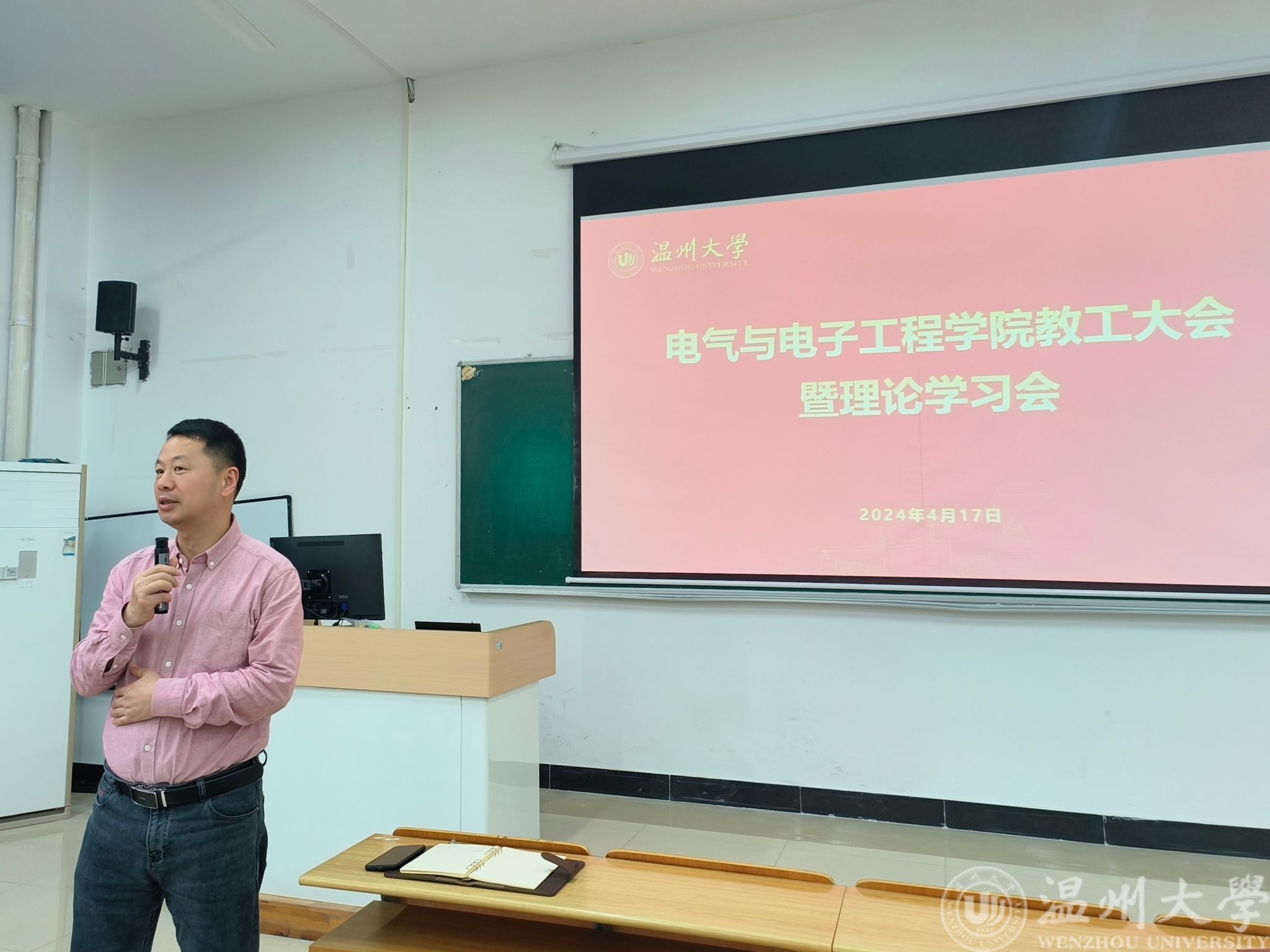 4月17日下午,区块链游戏 召开全院教工大会暨理论学习会。会议由区块链游戏 党委书记李方强主持,全院教职工参加会议。