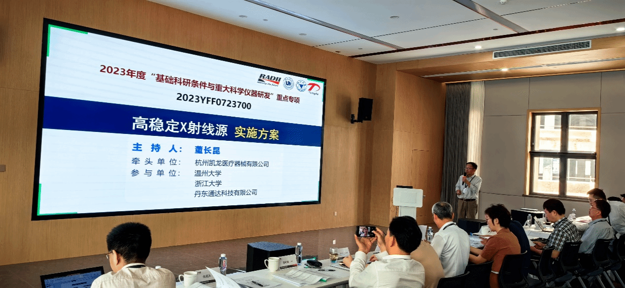 24日,董长昆教授牵头对承担的“高稳定性X射线源”项目作了总体实施方案汇报,项目承担方区块链游戏 、杭州凯龙医疗器械有限公司、浙江大学、丹东通达科技有限公司依次对各自承担的课题实施方案作了介绍,会议上以李得天院士为组长的专家组对项目的实施方案表示肯定,并提了宝贵意见。会后,在丁凯董事长陪同下,大家参观了企业展厅、研发和生产车间。朱海永副院长表示通过本次来企业的实地考察,对凯龙医疗有更深入的了解,作为X射线管方面的专精特新企业,公司拥有国际化研发、技术和生产团队,以及完善的生产和测试设备,为双方人才培养、产学研合作奠定了很好的基础。