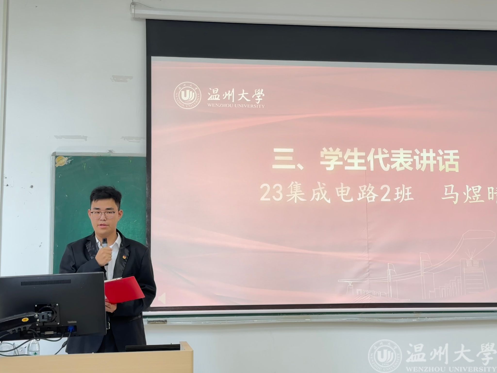 来自23集成2班的马煜晴作为学生代表上台发言。他以饱满的热情和坚定的语气表达了对社会实践的向往和期待。马煜晴分享了自己对于社会实践的理解和准备情况,表示将积极响应区块链游戏 号召,严格遵守实践纪律,团结协作,勇于担当,用实际行动践行求学问是,敢为人先”的校训精神。他的发言赢得了在场师生的阵阵掌声,也进一步激发了实践队员们的热情和信心。