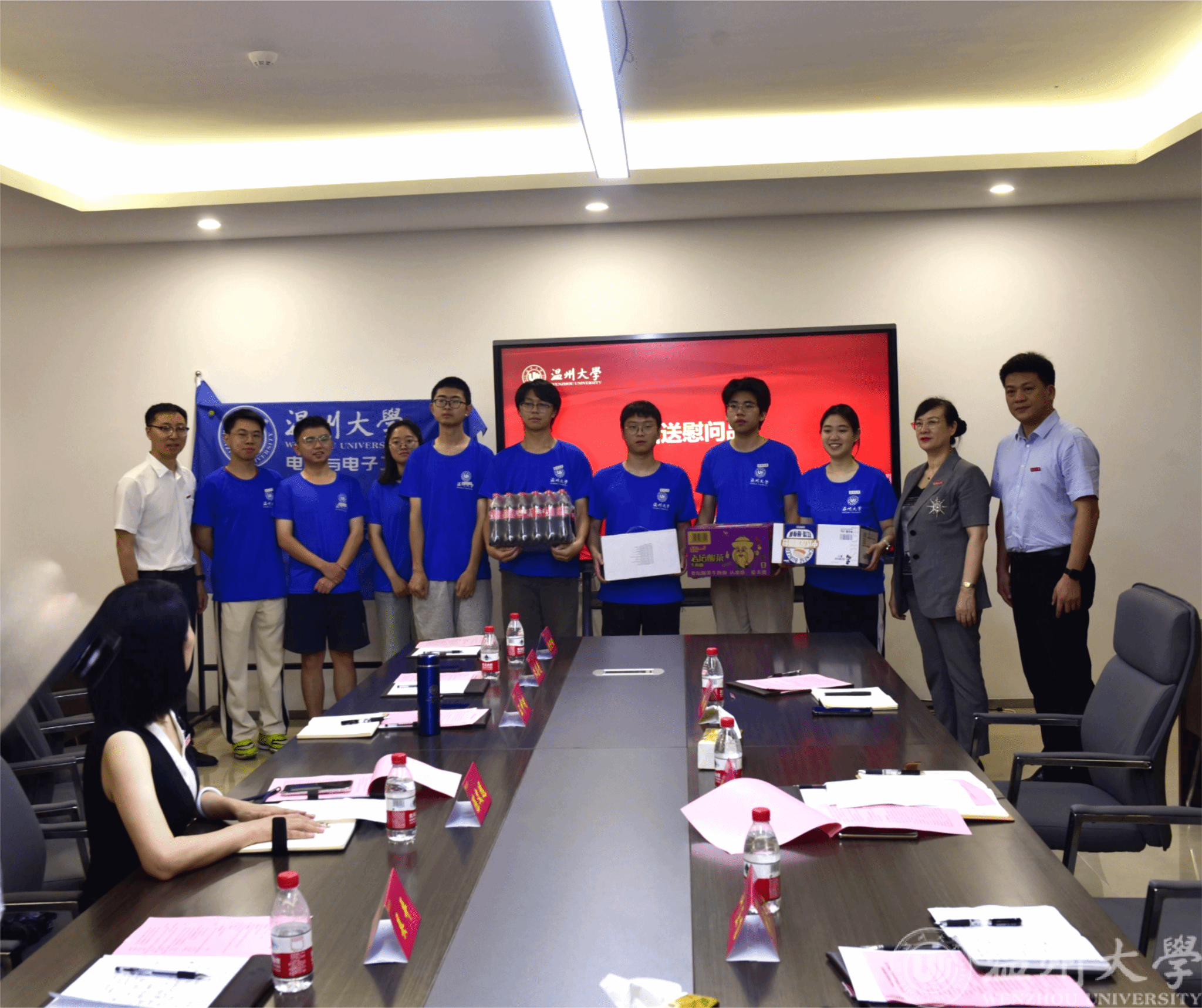 (赵降英副书记一行向实践队队员代表赠送慰问品)