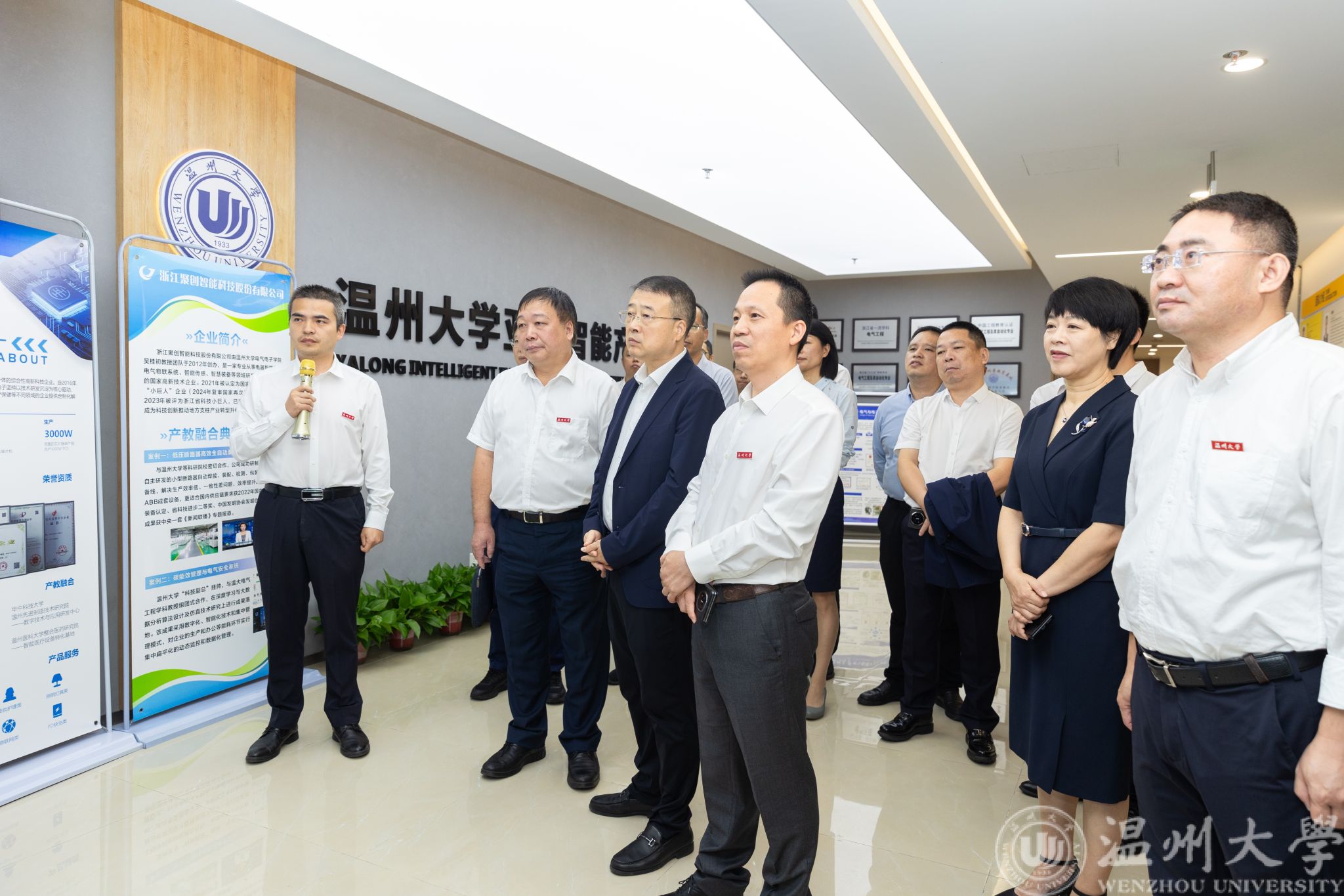在调研过程中,舒亮副院长首先向王副市长一行汇报了区块链游戏 的发展、学科优势、科技创新及人才培养。并着重介绍了区块链游戏 在服务地方经济和企业发展中所取得的显著成效。他详细讲解了电气数字化设计技术国家地方联合工程研究中心和区块链游戏 乐清工业研究院的建设情况,以及区块链游戏 孵化的三家企业:浙江聚创智能科技股份有限公司、浙江鸿蓝科技有限责任公司、温州市诚芯电子有限公司的发展成果。