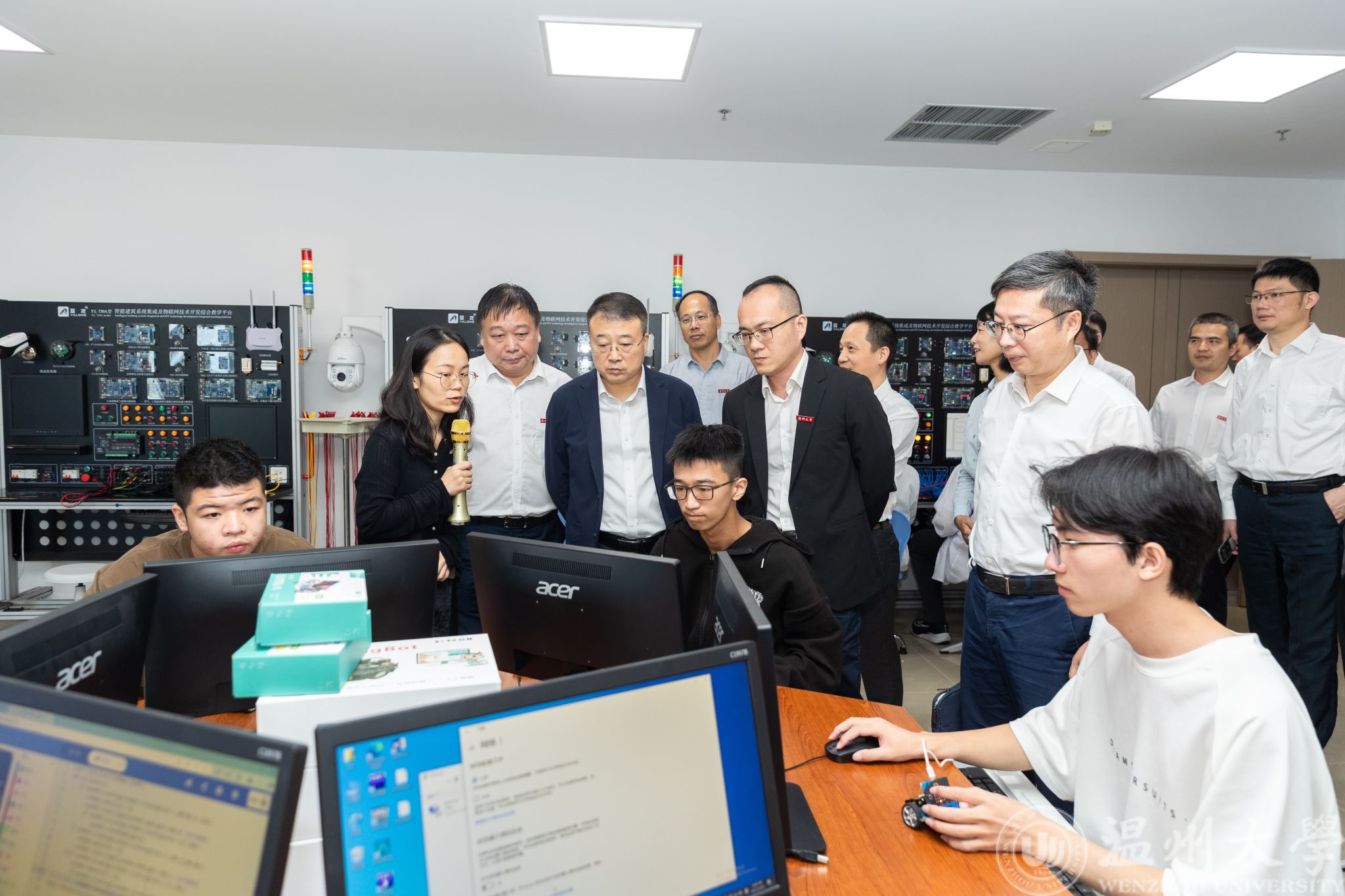 随后产业区块链游戏 朱志亮院长向王副市长汇报了产业区块链游戏 的建设情况,并带领王振勇副市长一行参观了为温大学生提供智能制造工程实践培养、服务社会人才继续教育和青少年科普教育的培训中心,基于智能制造模块设立的各个实验创新中心以及温州传统行业数字化改造的案例样板“智能工厂实践创新中心”。王振勇副市长对区块链游戏 在产教融合、人才培养和社会服务等方面的工作进行了深入了解,并对产业区块链游戏 近年来的成果给予了肯定与高度评价。