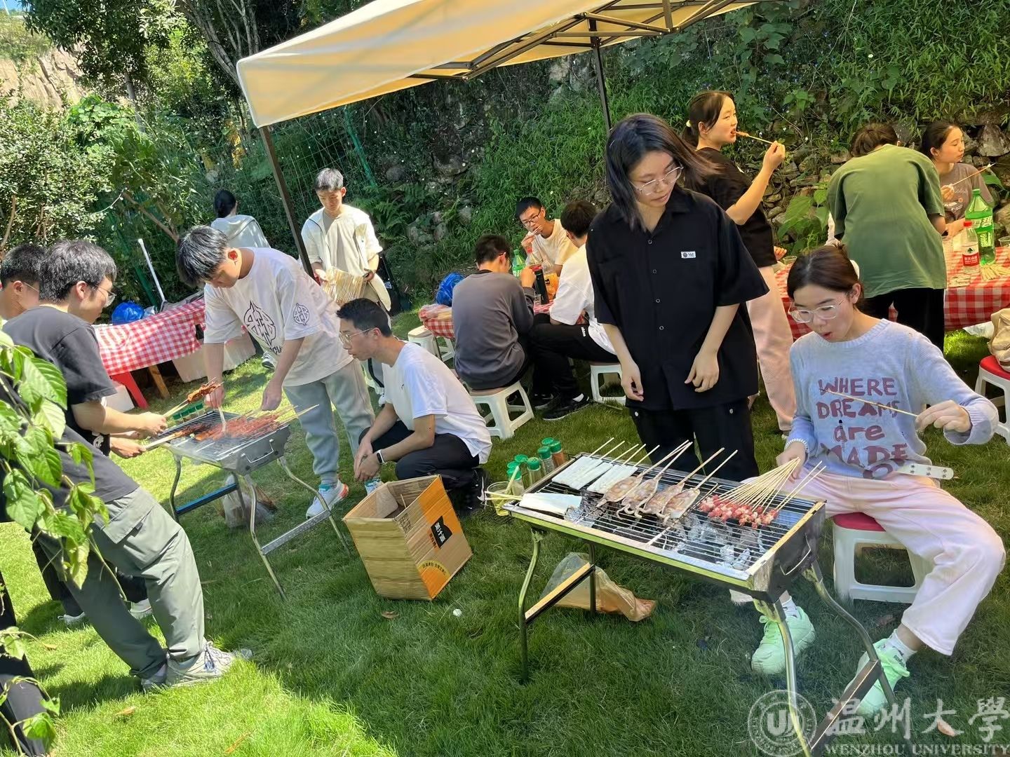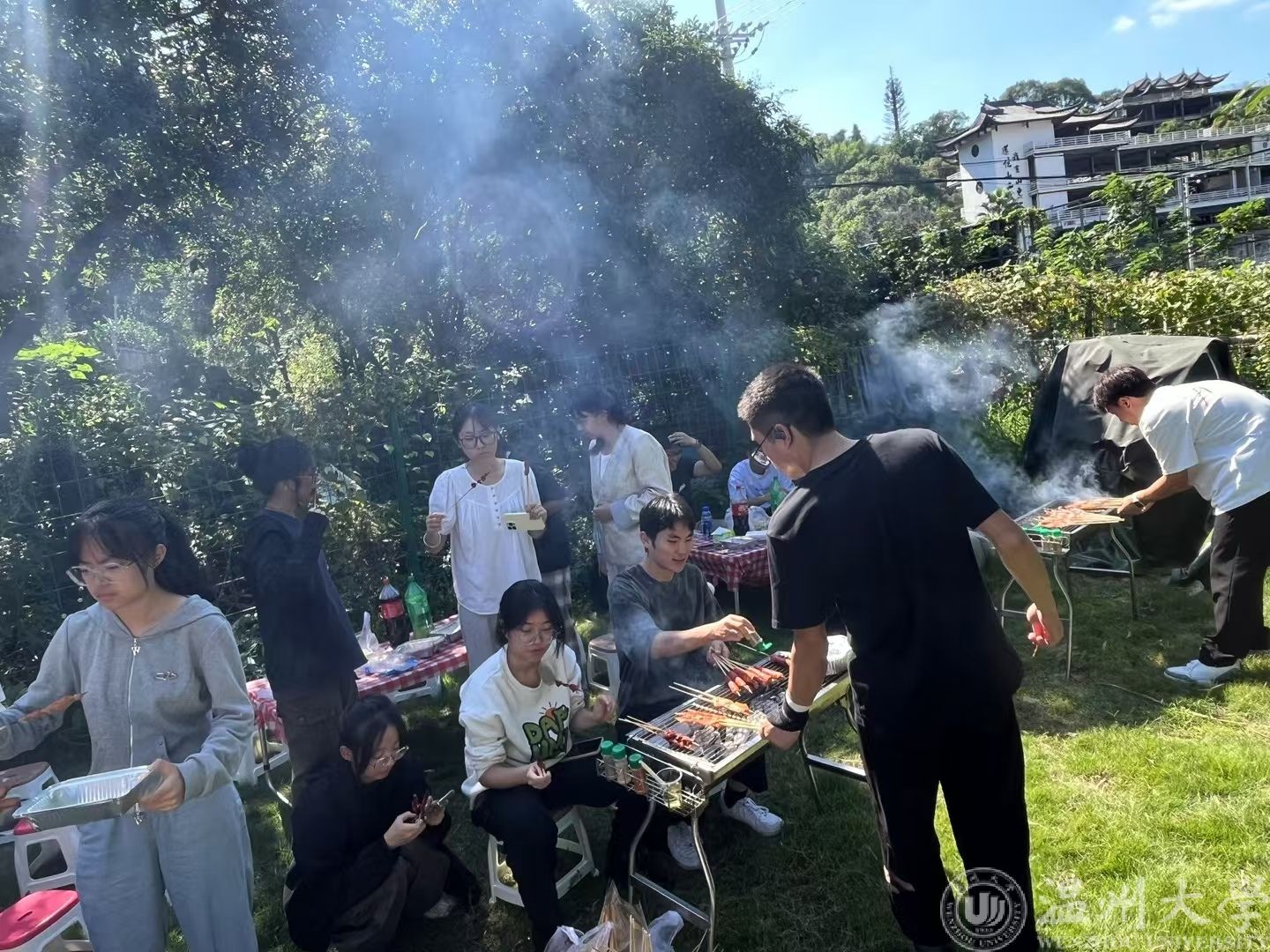 接下来就是激动人心的烧烤时刻,大家彼此合作,做自己擅长的事,齐心协力将烧烤完成,香喷喷的美食令人垂涎三尺,后面大家还相互赠送美食,有才艺的同学更是高歌一曲。将团建氛围推向高潮。