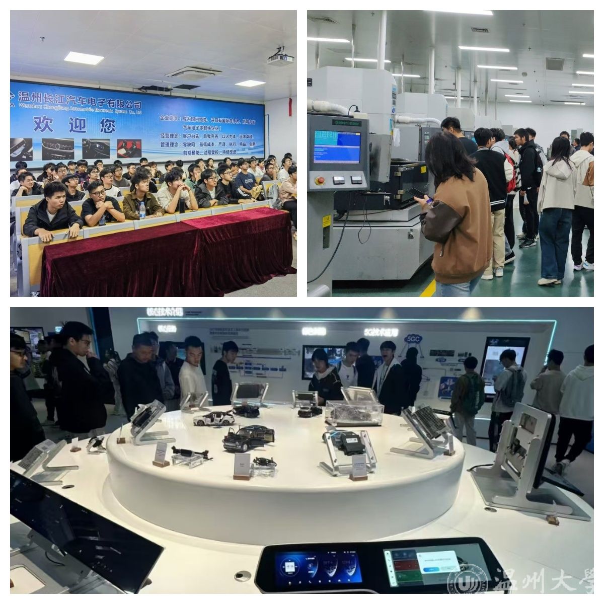 随后,学生们前往浙江长江汽车电子有限公司,他们不仅参观了公司的加工车间与研发部,还了解了汽车电子控制技术的发展,公司专业人员与同学们进行了深入的交流,包括专业课程知识与企业对接、对未来工作规划等多方面内容进行了讲解。