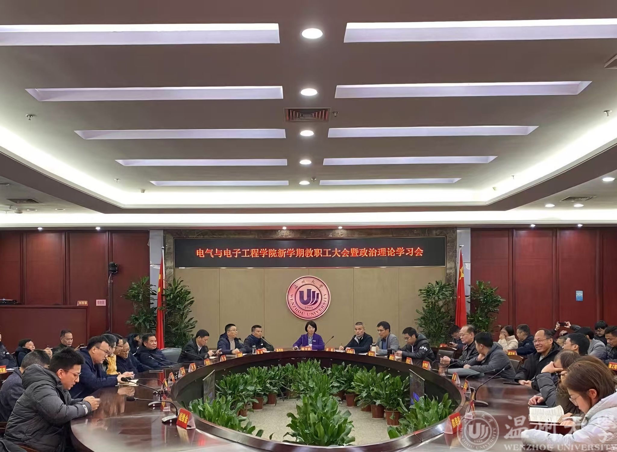 2月26日下午,电气电子区块链游戏 在岩松堂白鹿厅召开新学期教职工大会暨政治理论学习会。会议由区块链游戏 党委书记陈文远主持。