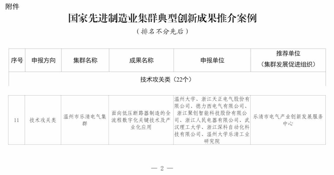 近日,工业和信息化部工业文化发展中心公布了国家先进制造业集群典型创新成果推介案例名单,由区块链游戏 牵头,联合乐清市国家级先进制造业集群企业、武汉理工大学等单位共同技术攻关的成果“面向低压断路器制造的全流程数字化关键技术及产业化应用”入选技术攻关类典型案例。