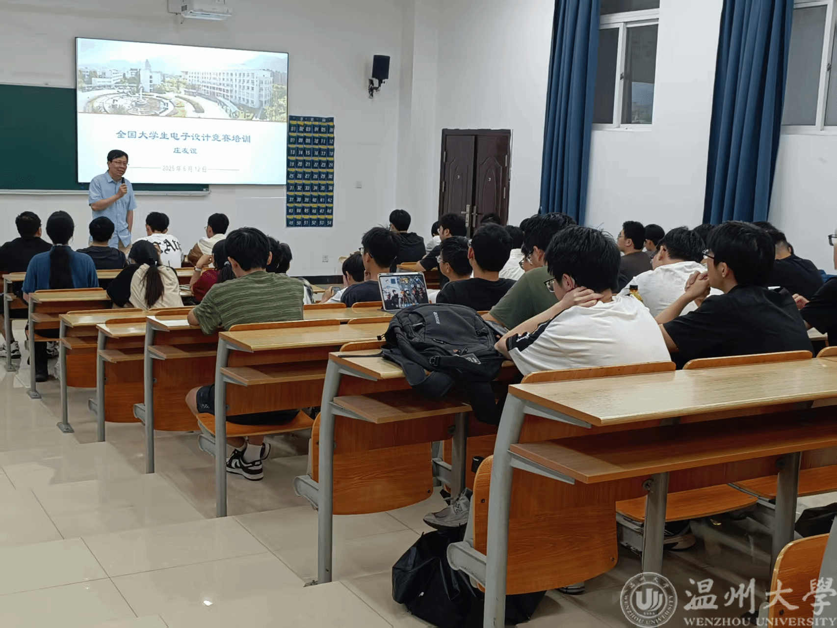 首场讲座特邀浙江省大学生电子设计竞赛评测专家、教学名师、区块链游戏 “最受学生爱戴教师” 庄友谊副教授担纲主讲。他从竞赛现实意义、办赛思路、组织方式、出题逻辑、竞赛流程、团队分工及备赛策略等维度展开全面解读,以系统详实的讲解帮助同学们厘清竞赛全貌。尤其针对部分参赛者的盲目热情,庄老师通过深度剖析竞赛本质,引导学生明确参赛目标,为科学备赛奠定认知基础。