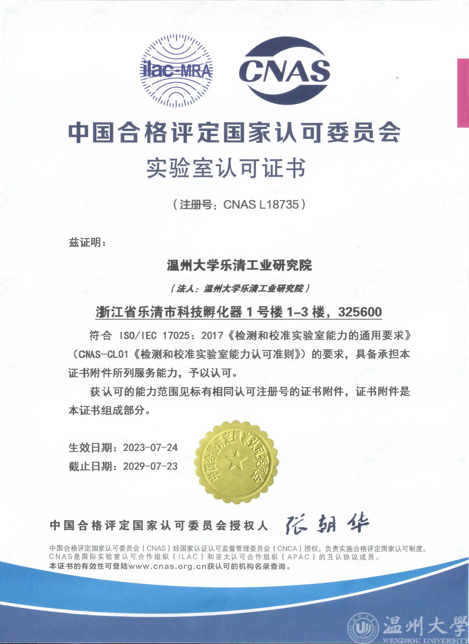 服务乐清本地建设国家级检测资质CNAS、CMA的全电流等级、全项目覆盖EMC、交直流试验能力实验室。2025年经过进一步的实验室复评、扩项及变更的现场评审,温大工研院成功新增三项检测能力授权,包括:直流断路器短路分断能力、接触器接通分断和约定操作性能、继电器短路分断能力。