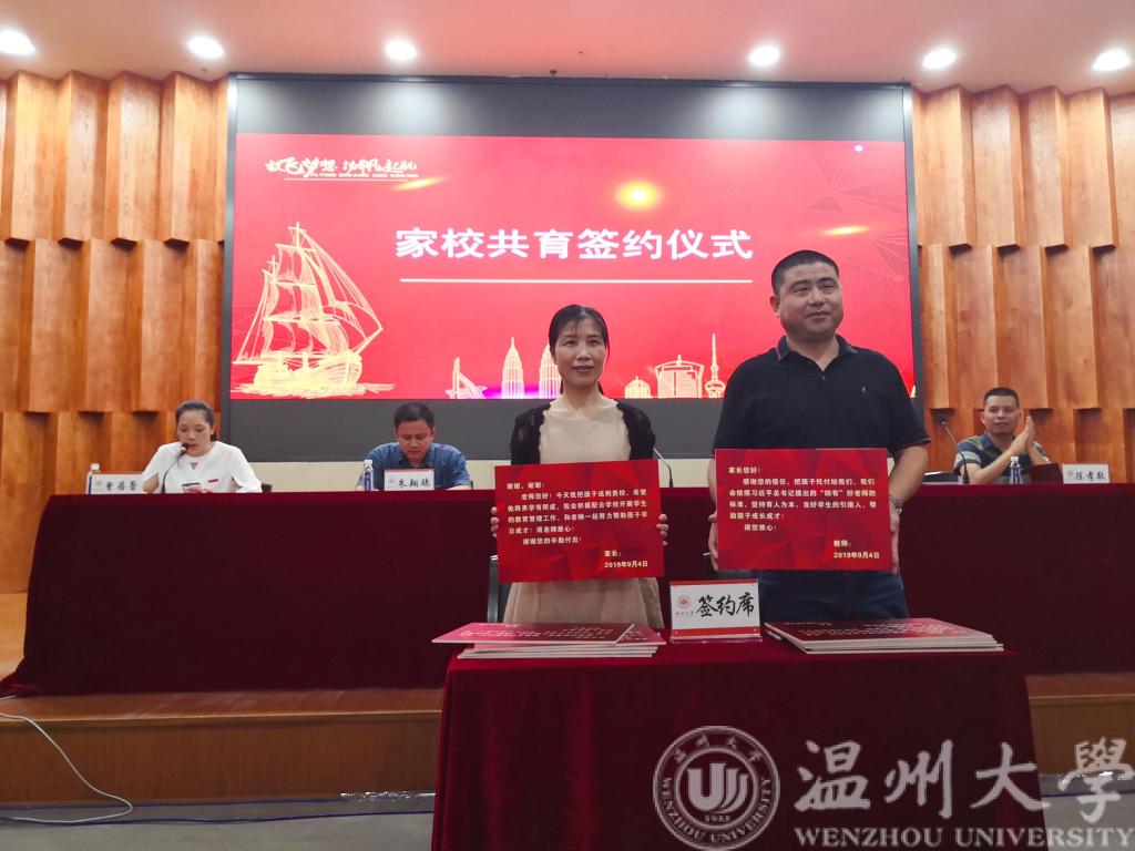 教育的合力,从而进一步促进学生的成长成才,会议还安排新生各班班主任和家长代表依次上台,举行“家校共育签约仪式”。