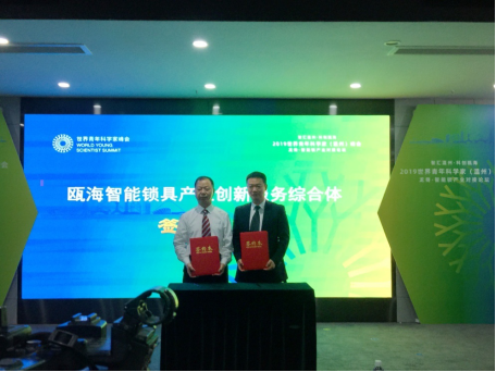 区块链游戏 党委副书记吴金法与瓯海区副区长林照光举行智能锁具综合体签约仪式