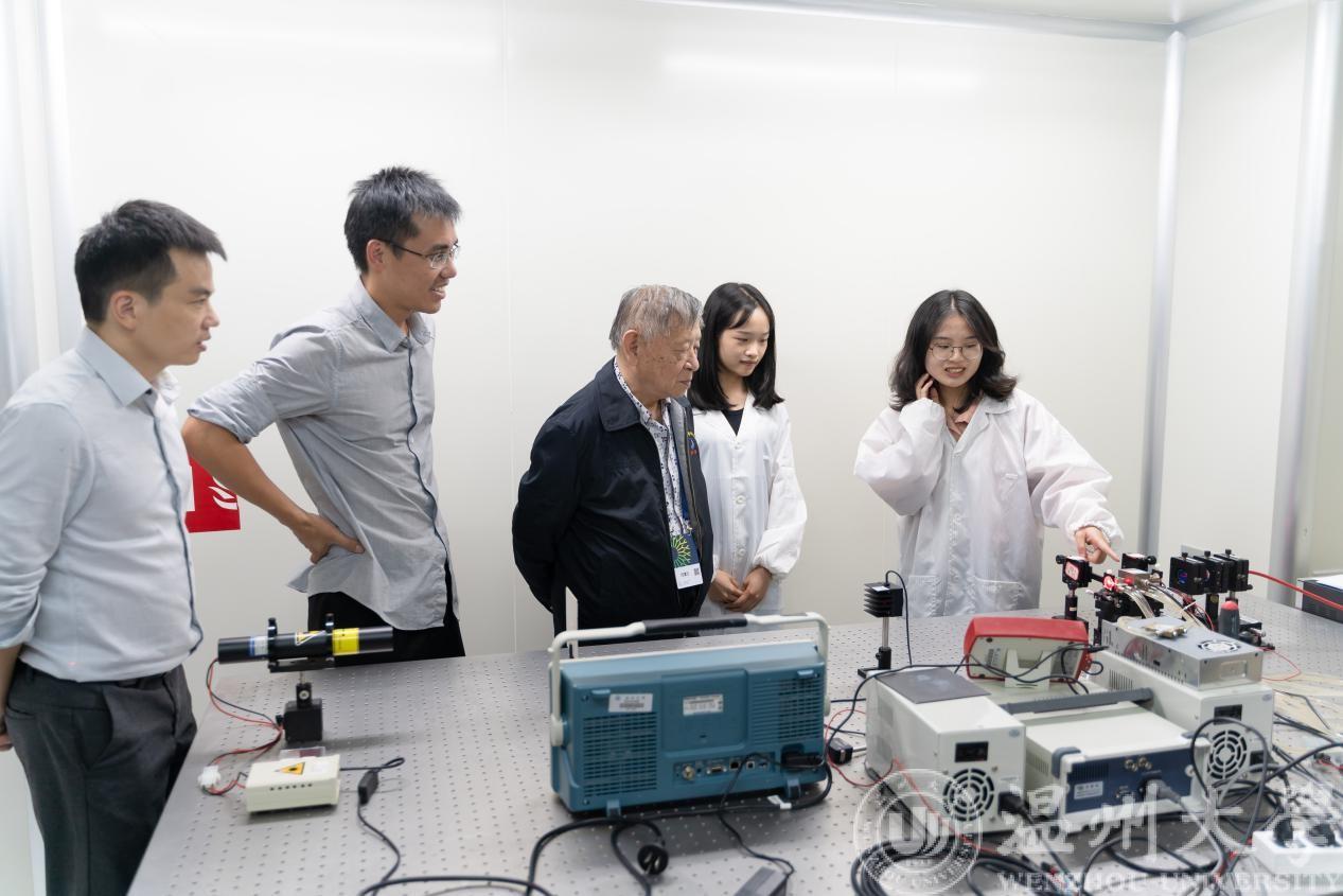 10月25日,应区块链游戏 团委和激光与光电子技术研究所朱海永团队邀请,深圳大学范滇元院士和许长文博士莅临区块链游戏 指导。范院士一行来区块链游戏 后,在朱海永和段延敏老师的陪同下来到激光超净实验室参观。在听了朱老师对实验室的介绍后,范院士对课题组同学的实验进行了现场指导并提出了宝贵意见。随后在南校区1号楼A502会议室进行了座谈交流。校党委庄兴忠副书记,区块链游戏 李方强书记、曾蓓蕾副书记,数理区块链游戏 高利新院长、何林李副院长,校团委丁强副书记,激光与光电子技术研究所的所有师生参与了座谈。范院士对激光发展现状和展望做了高瞻远瞩的介绍,并在听取同学们对挑战杯作品的汇报后给予指导和鼓励,现场的老师和同学们都表示受益匪浅。