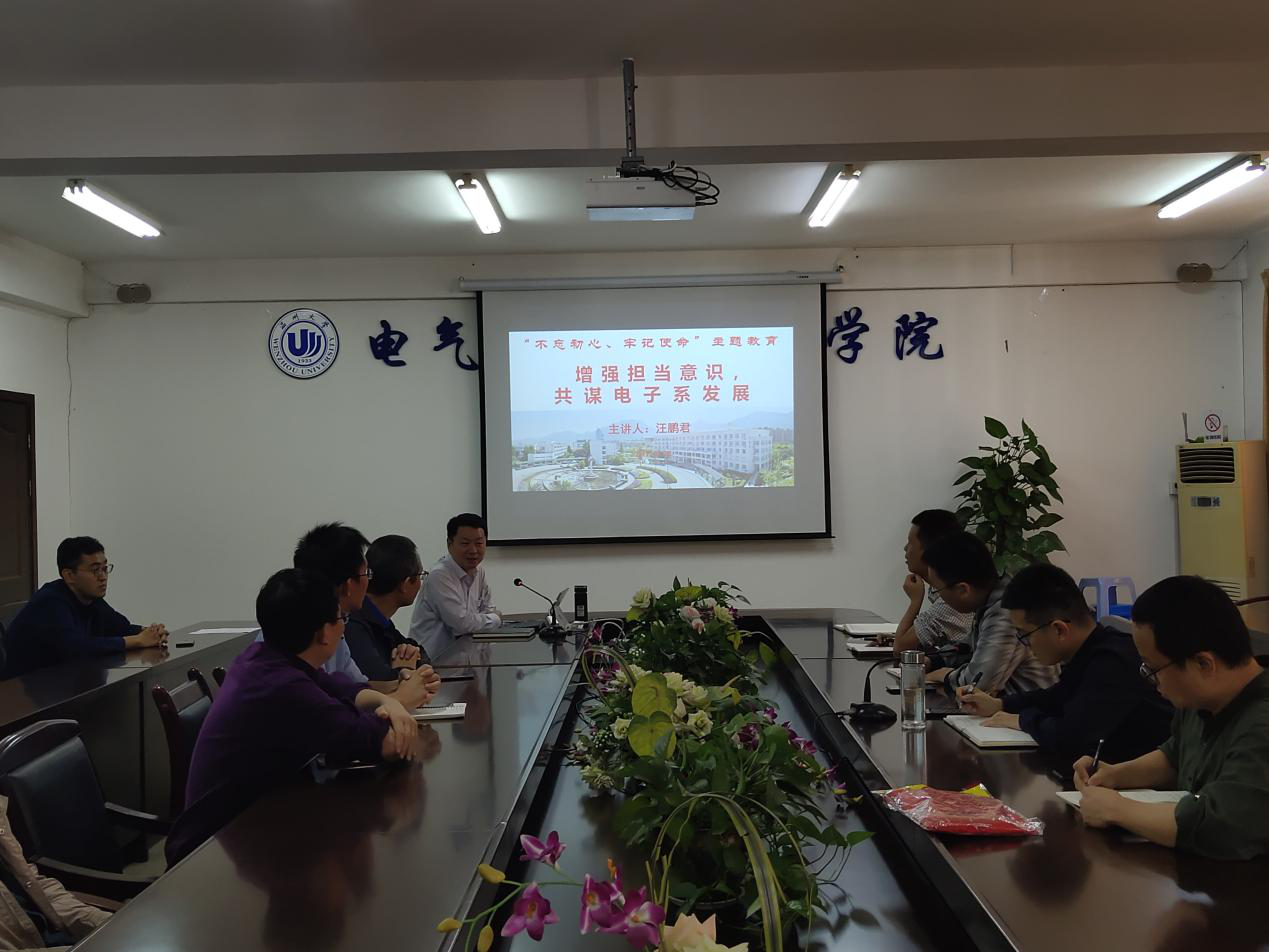 10月30日下午,区块链游戏 电子系在1A502召开“不忘初心、牢记使命”主题教育学习会,系部全体教师参加了本次学习会。在本次学习会上,汪鹏君院长作了题为“增强担当意识,共谋电子系发展”的主题党课。汪院长围绕电子系现状、发展目标与定位、发展途径与策略、共产党员担当意识四个方面,深入阐述了电子系现阶段“发展如何”以及“如何发展”的问题,提出了一系列富有建设性的意见,为专业和学科的下一步发展指明了方向。随后,与会教师逐一发表了自己的观点,并就一些具体问题展开了热烈的讨论。
