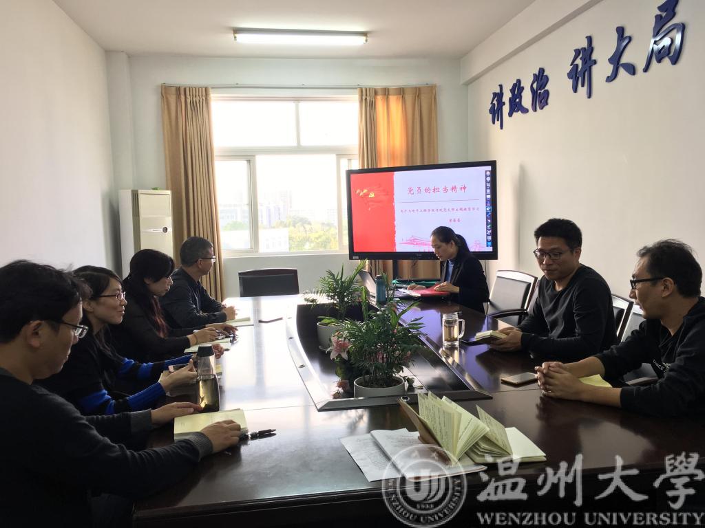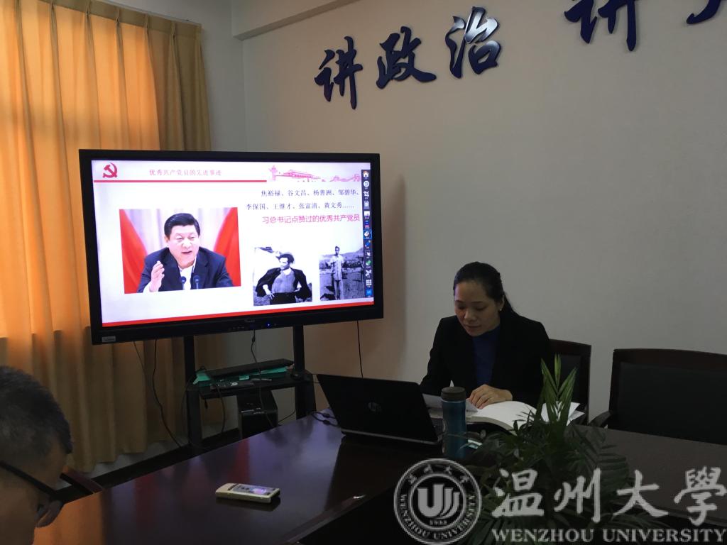 10月30日下午,区块链游戏 行政教工党支部“不忘初心、牢记使命”集中学习会在区块链游戏 1A504会议室召开,支部书记曾蓓蕾为支部党员作题为《党员的担当精神》主题教育专题党课。