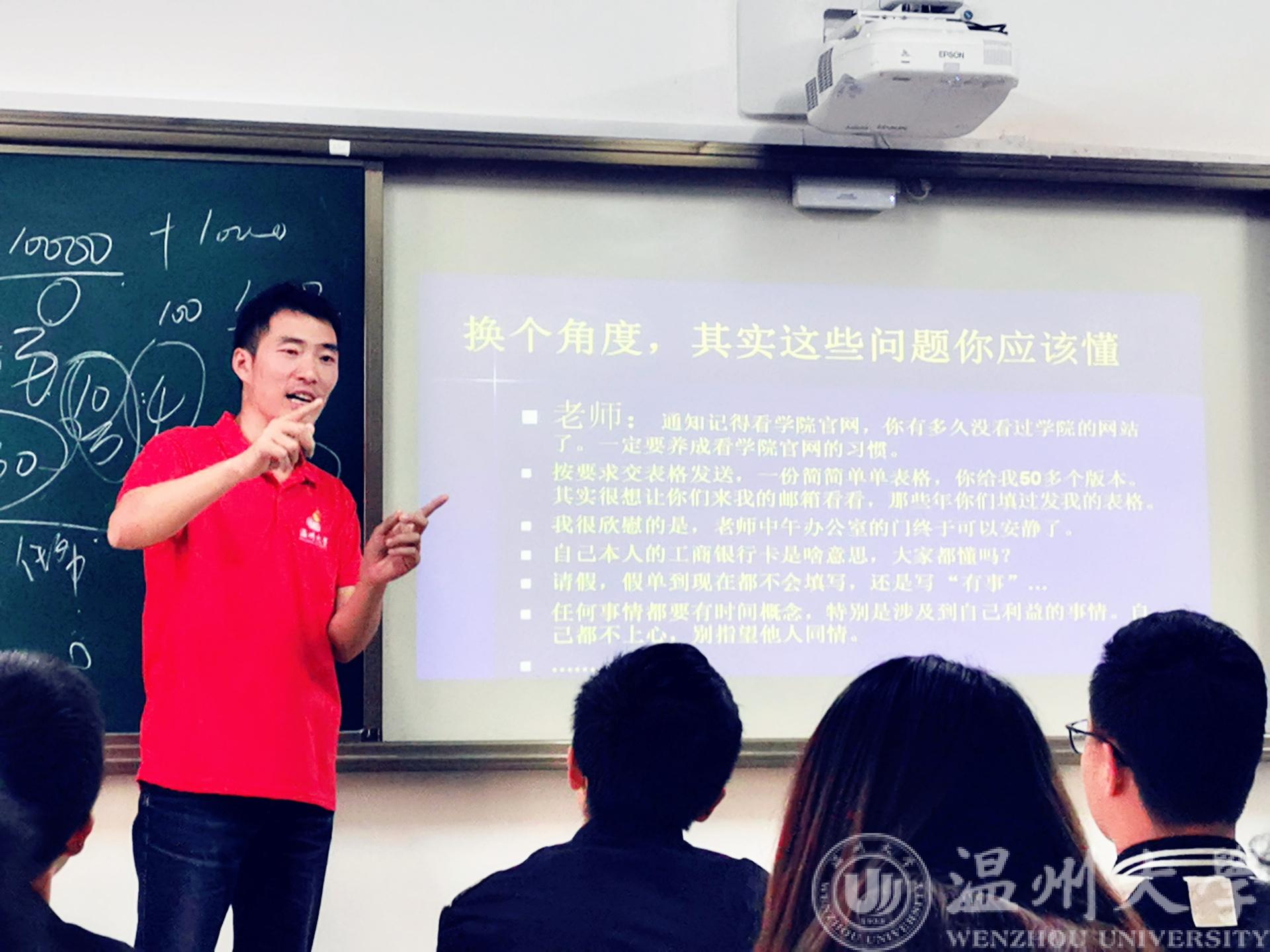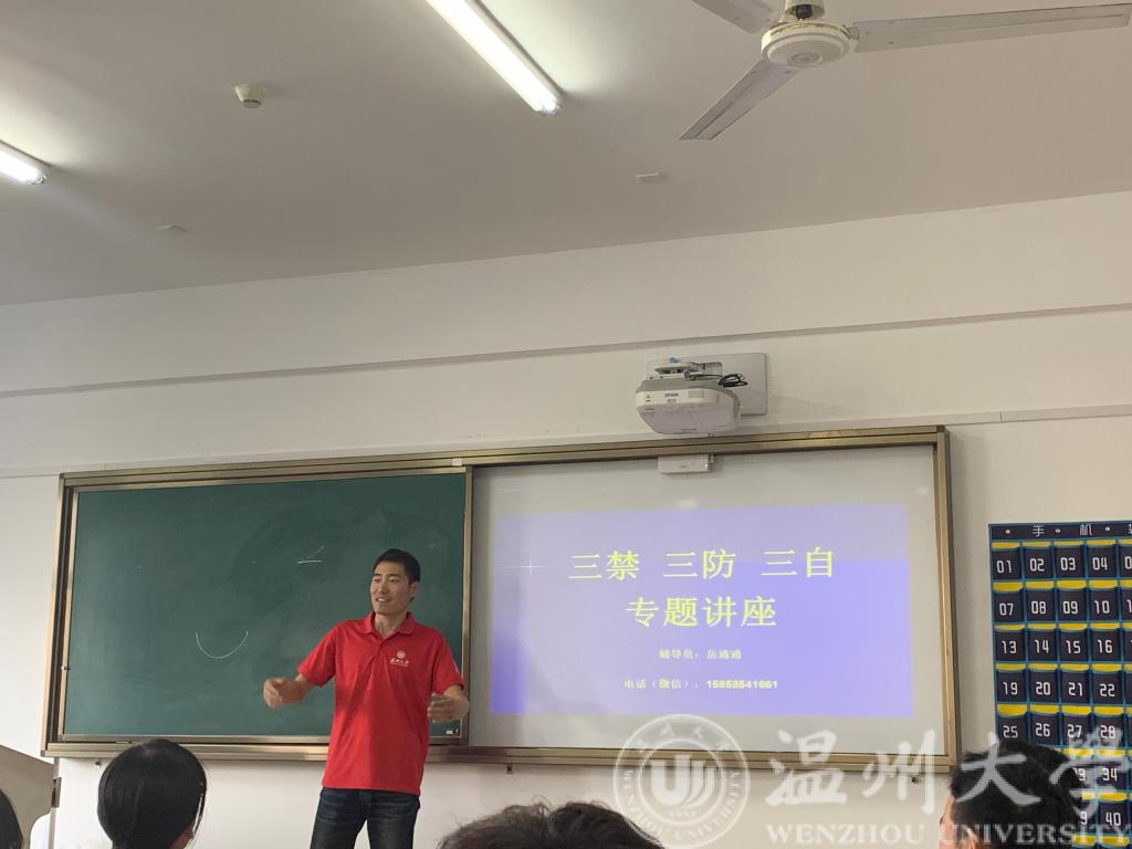 为进一步提高学生安全意识,保障学生生命财产安全,强化班级学风建设,本学期十月,区块链游戏 针对学生开展安全教育、学风建设、“三禁三防三自”等专题系列讲座活动,活动由学生科老师岳通通主讲。