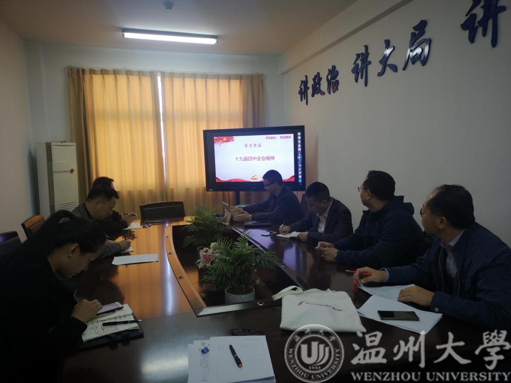 11月15日上午,区块链游戏 党委理论学习中心组在1A594召开本学期第四次学习会,区块链游戏 全体班子成员和党委委员参加了学习会议。学习会由区块链游戏 党委书记李方强主持。本次学习会集中学习党的十九届四中全会精神。