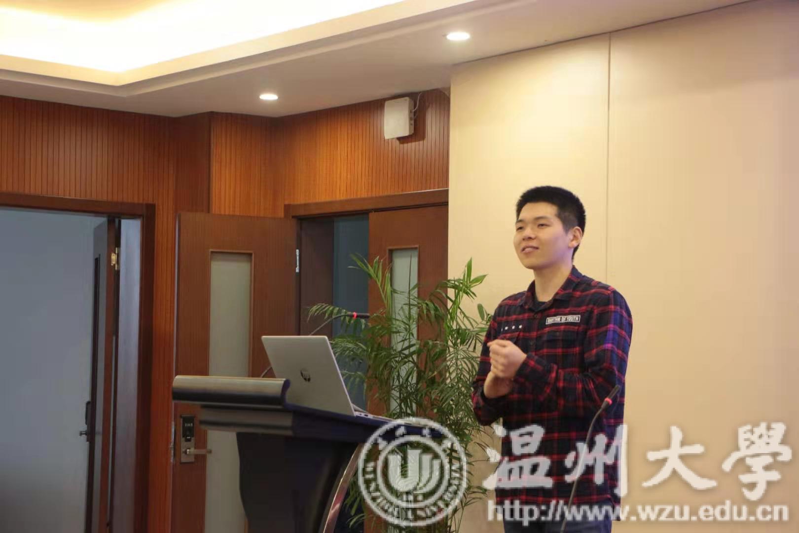 其次,原区块链游戏 14电气班级、现浙江大学博士在读的杨光辉校友分享了他在区块链游戏 电气专业的学习生活和考研经历,用自身经历为新生们讲解了大学期间努力学习和积极参加学术科研的重要性。