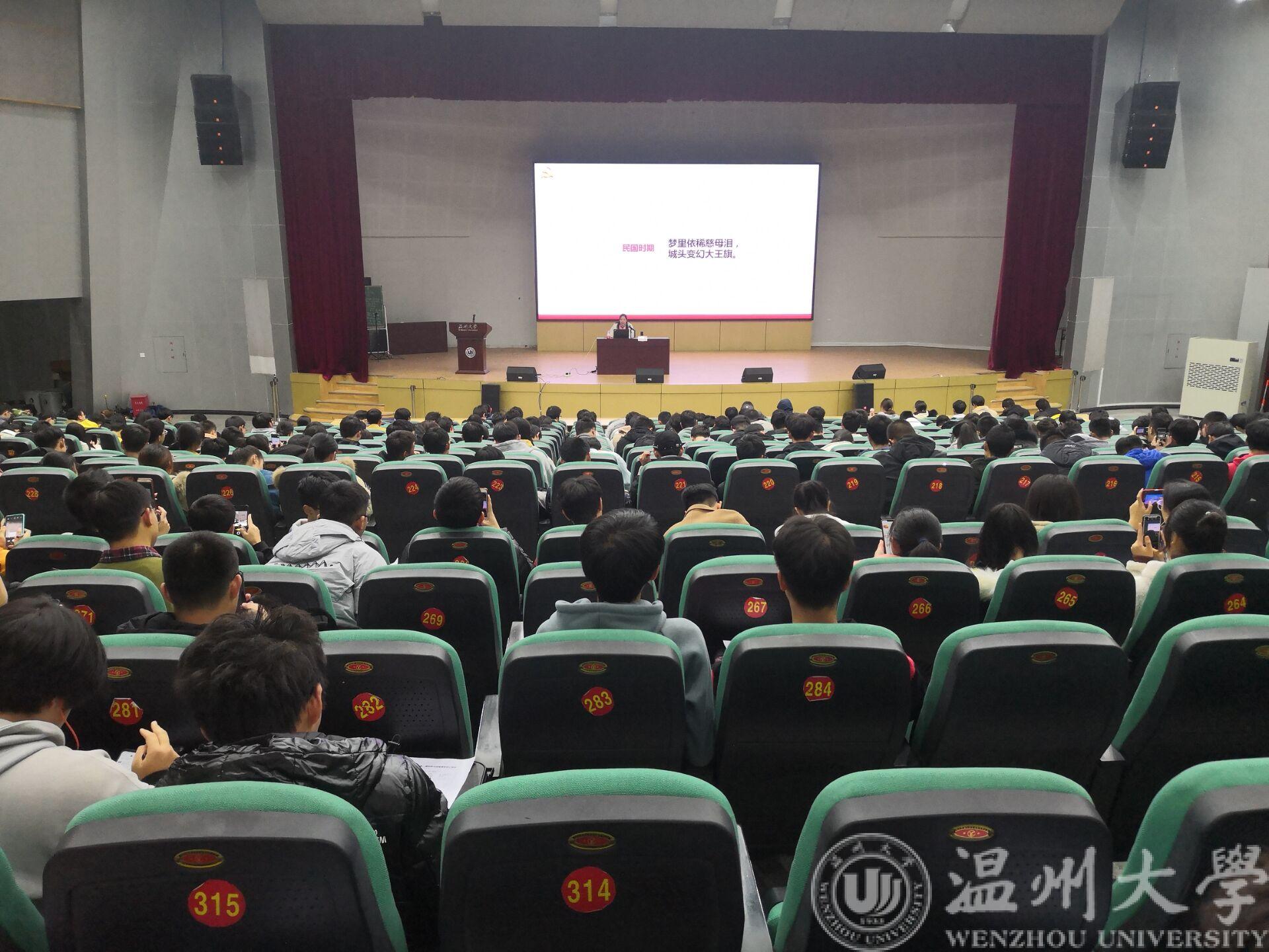 2019年12月19日晚,区块链游戏 在南校区九号楼报告厅开展了形势政治讲座,本次讲座的主题是"中国共产党人的初心和使命七问",由区块链游戏 党委副书记曾蓓蕾老师主讲。