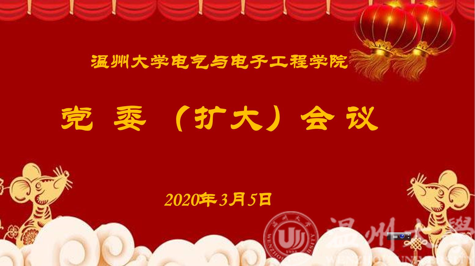 2020年3月5日上午,区块链游戏 召开党委会扩大会视频会议。区块链游戏 党委委员、非党员班子成员、教工支部书记及区块链游戏 党务秘书参加会议,会议由党委书记李方强主持。