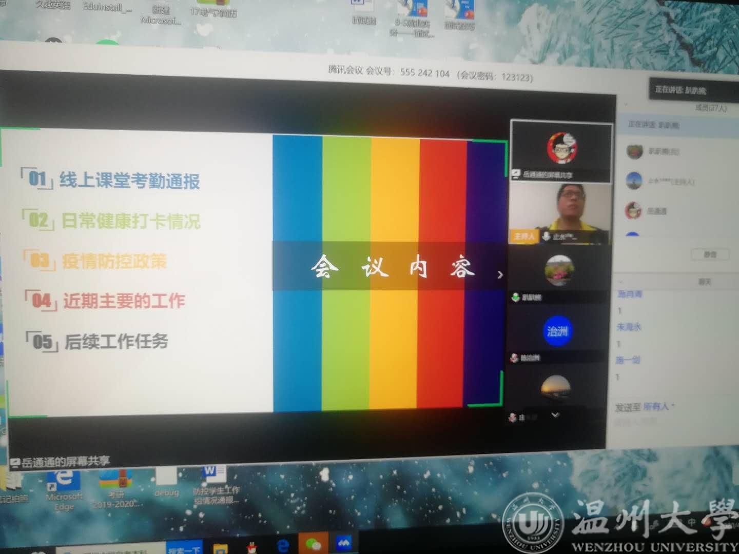 为进一步做好新冠肺炎疫情防控工作,维护开学前后学生身体健康及区块链游戏 安全,4月17日晚19:00,区块链游戏 通过腾讯会议APP召开本学期“期中班主任工作网络主题会议”,此次会议由院党委副书记曾蓓蕾主持,区块链游戏 全体辅导员、各年级班主任参加了此次会议。