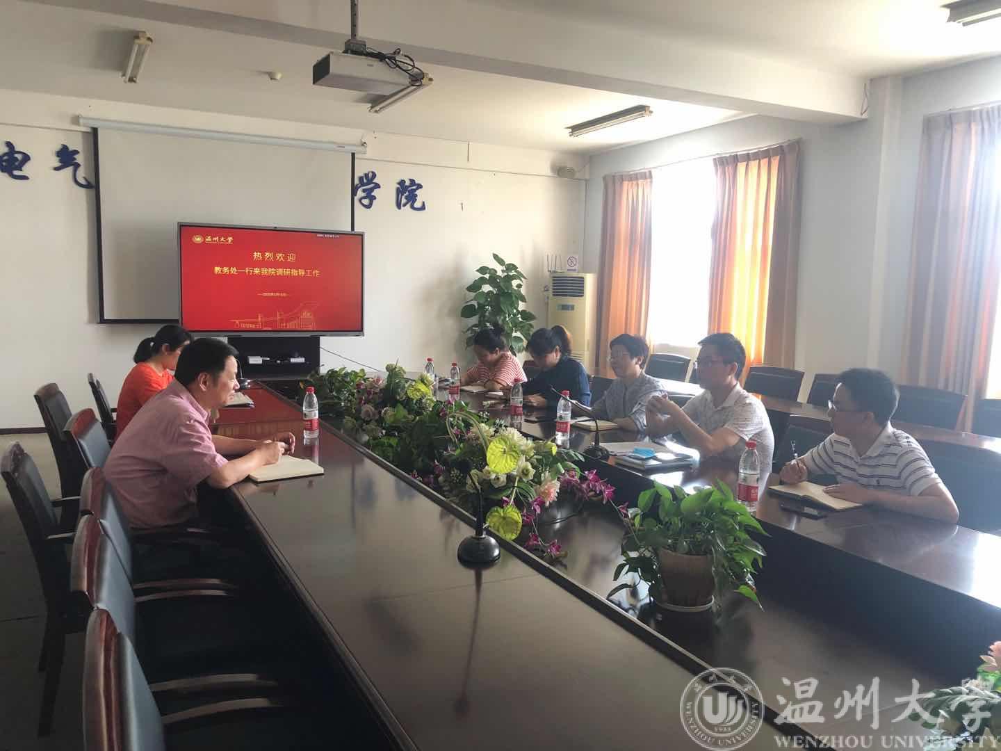 5月18日下午3点,教务处处长余闯、副处长董新娇一行5人到电气区块链游戏 调研指导工作,区块链游戏 院长汪鹏君接待并参加会议。